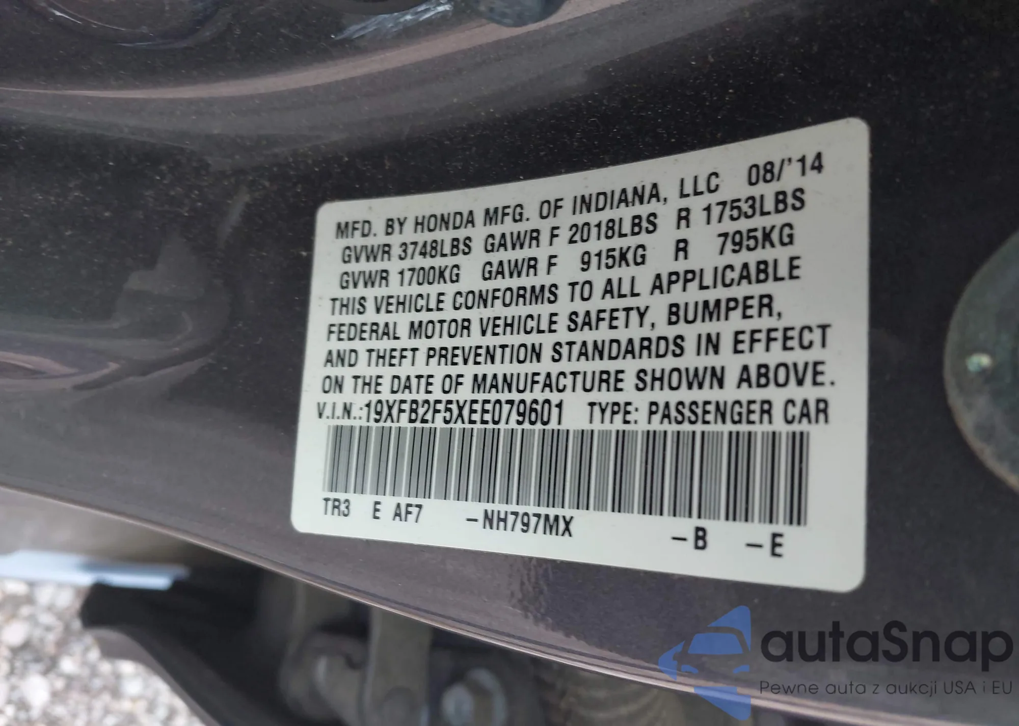 LOT: 42702415 VIN: 1HGCP2F37AA100180
