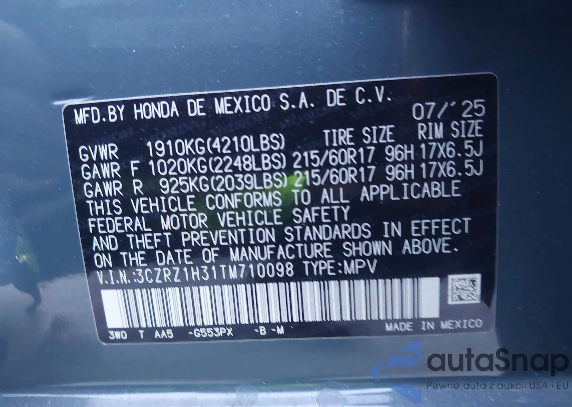 • VIN 3CZRZ1H31TM710098