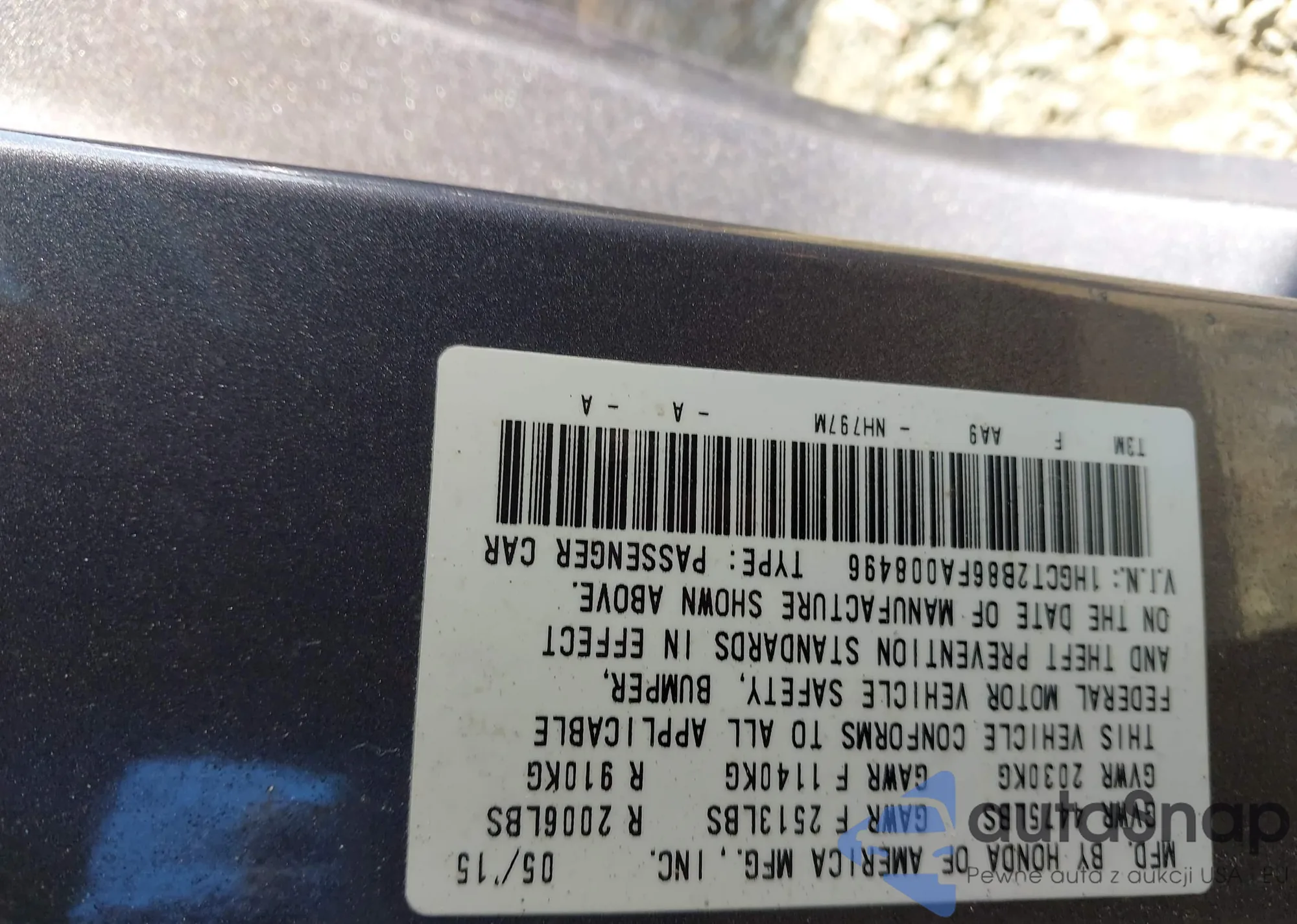 LOT: 43335169 VIN: 1HGCT2B86FA008496