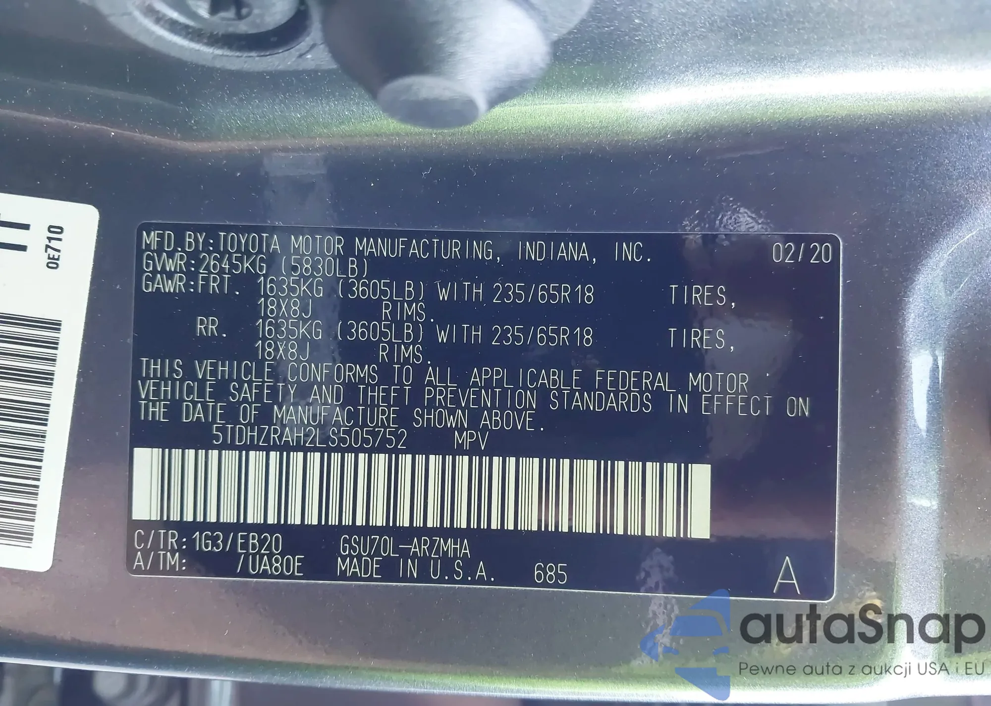 • VIN 4T1BK1FK8EU545067