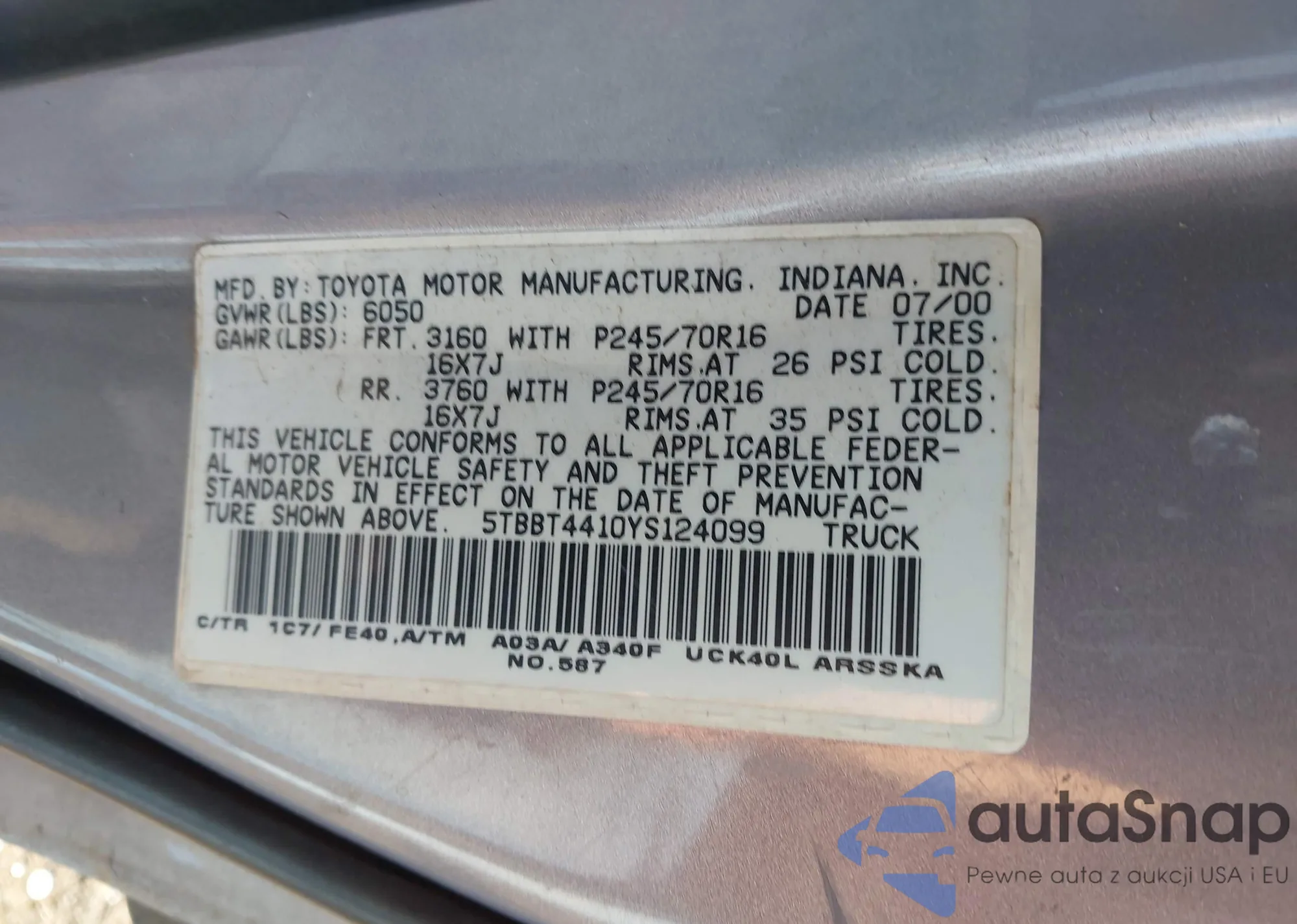 • VIN 5TBBT4410YS124099