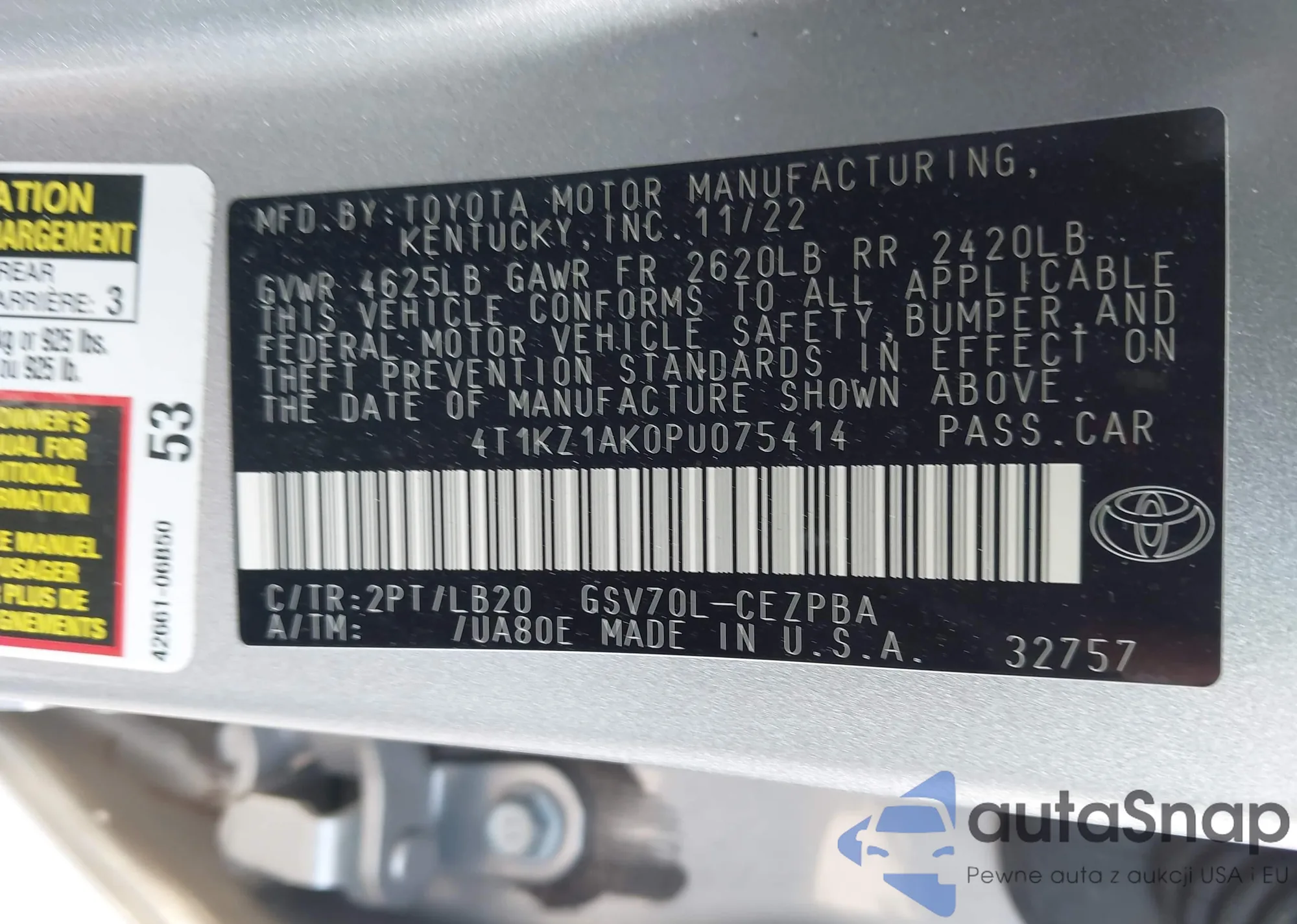 LOT: 43512840 VIN: 4T1KZ1AK0PU075414