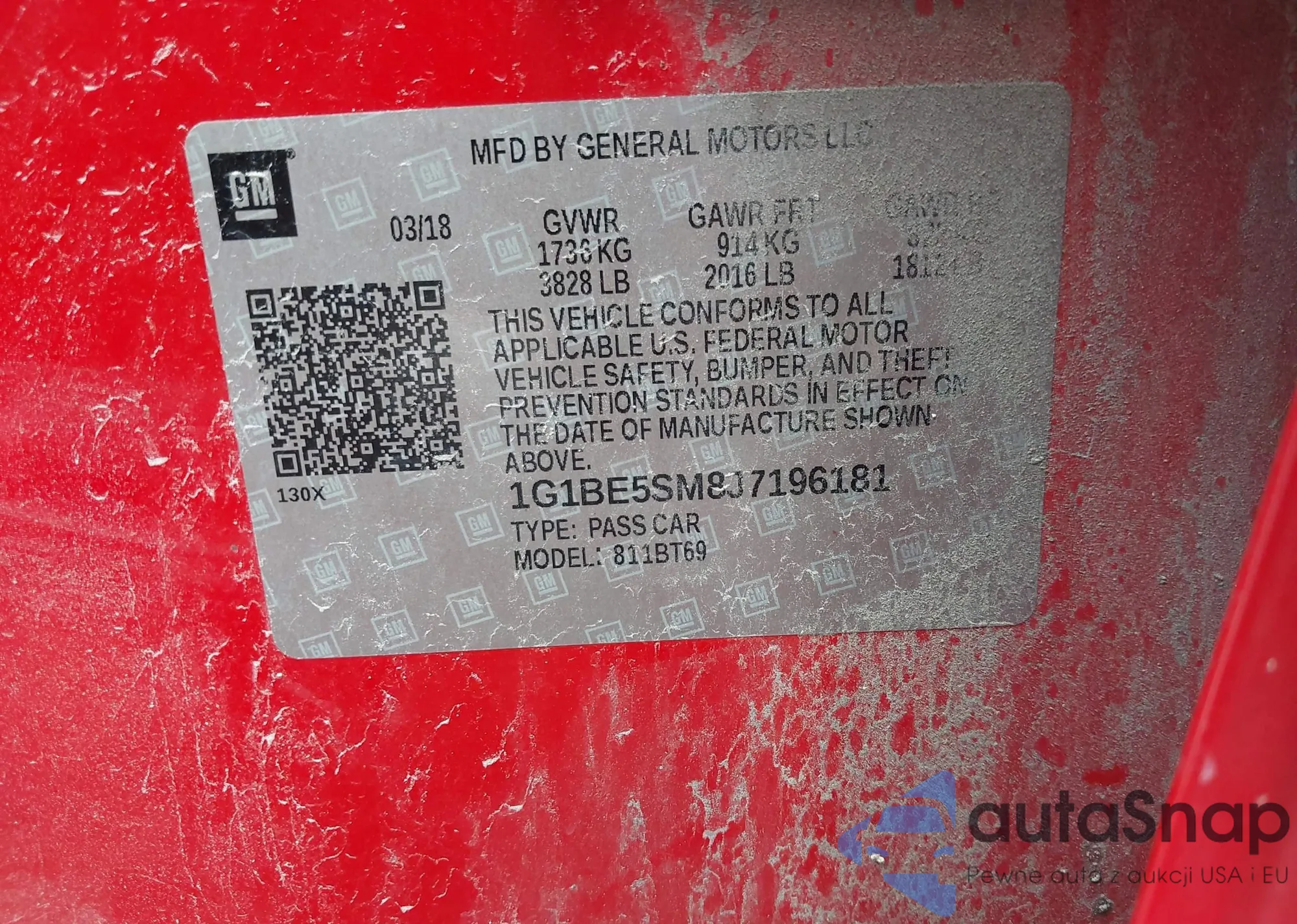 LOT: 42514097 VIN: 1G1BE5SM8J7196181