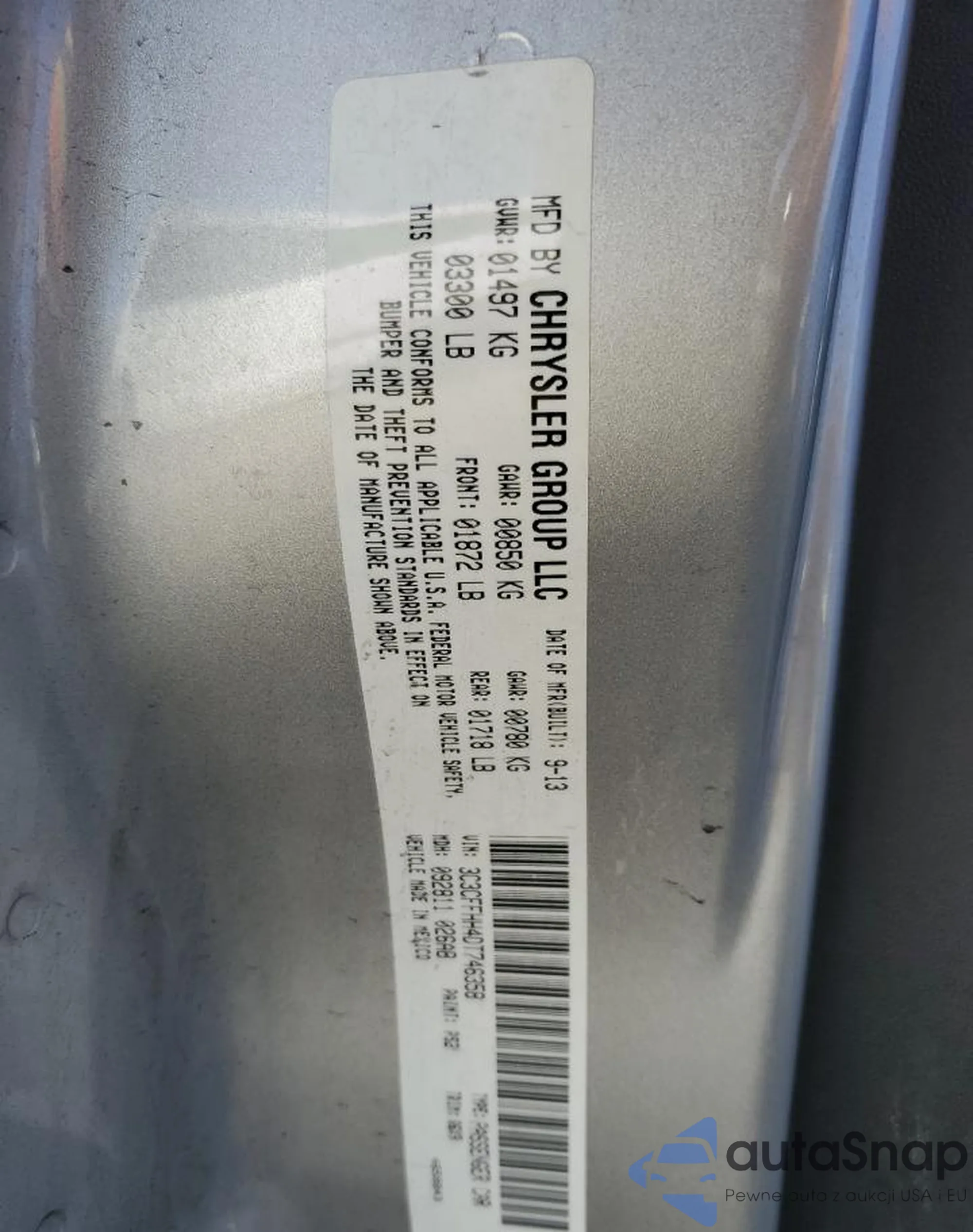 • VIN 3C3CFFHH4DT746358