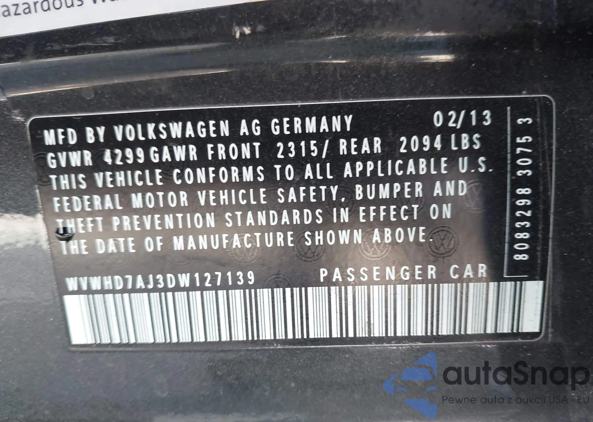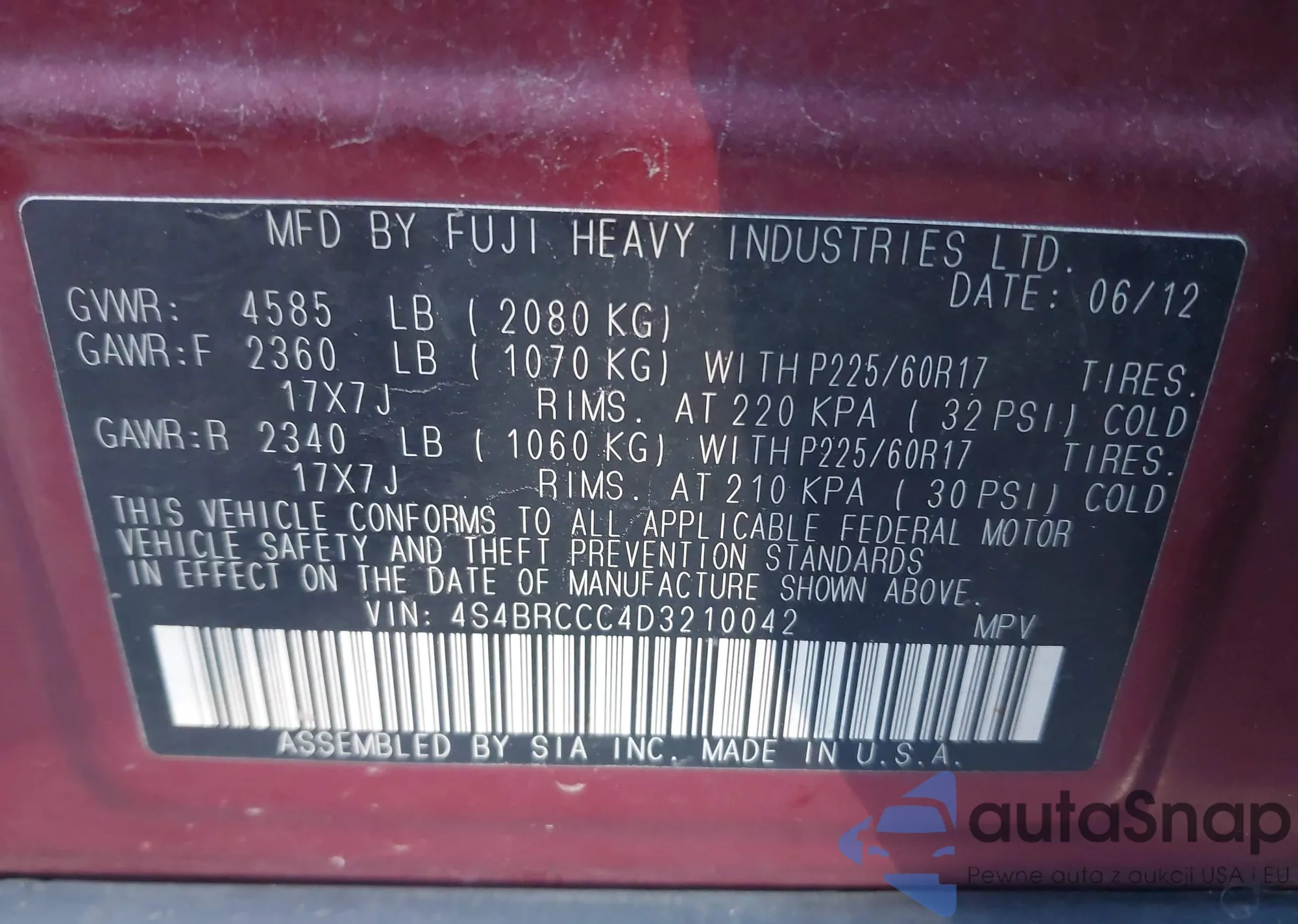• VIN 4S3BMCK68C3017356