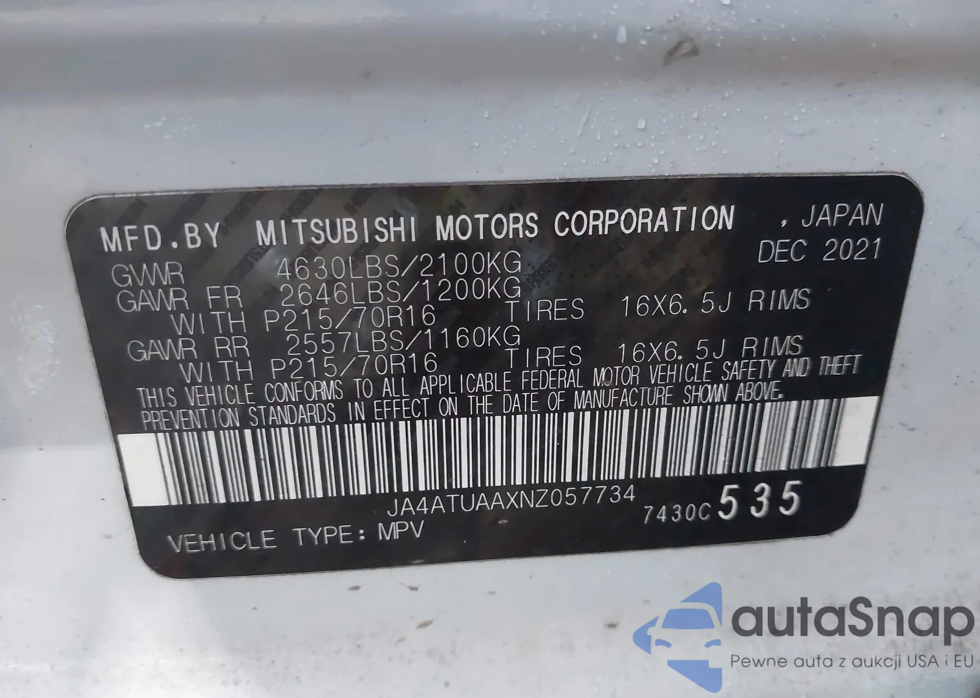 • VIN JA4ATUAAXNZ057734