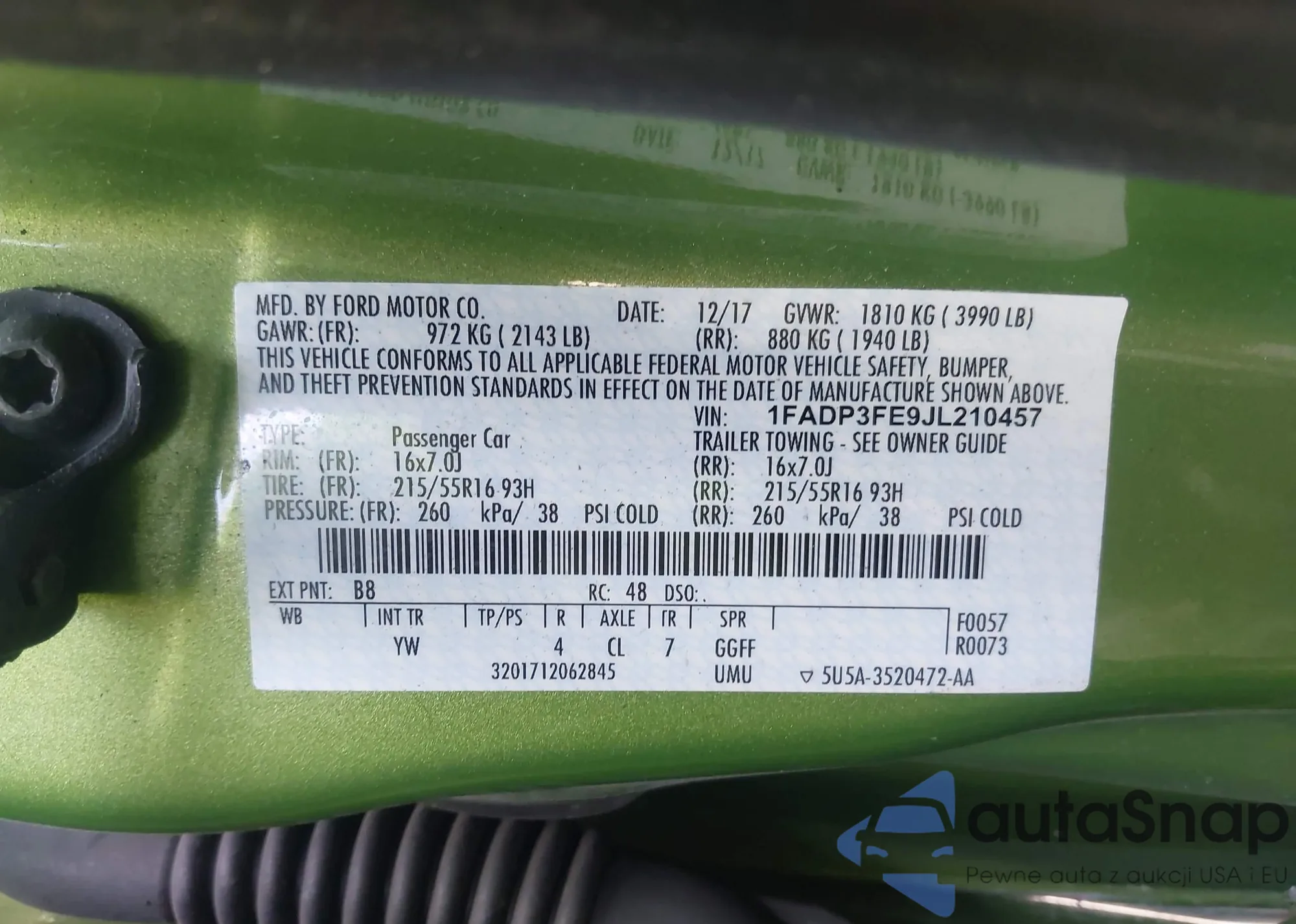 • VIN 1FADP3FE9JL210457