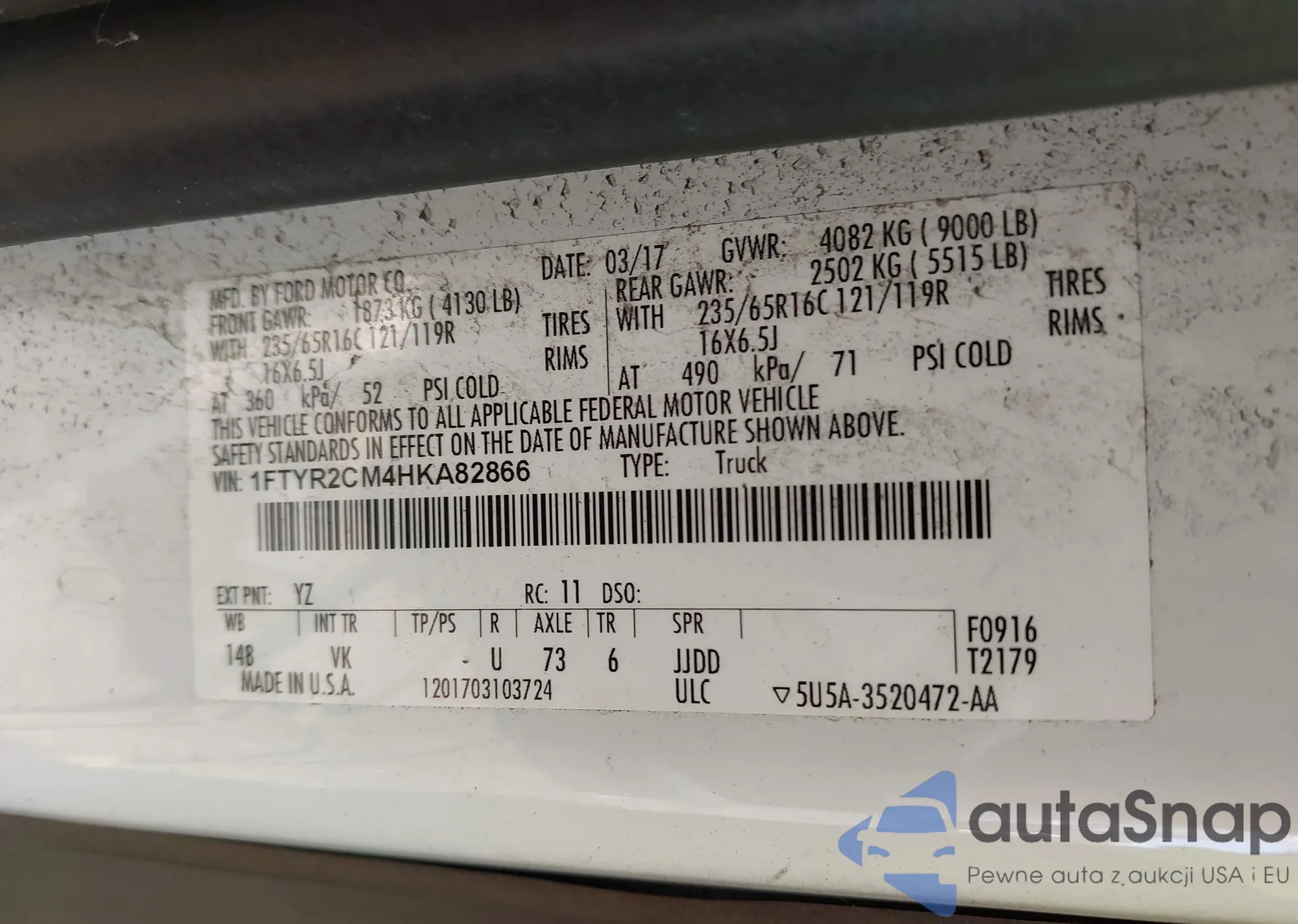 LOT: 43268321 VIN: 1FMCU0F74HUA75497