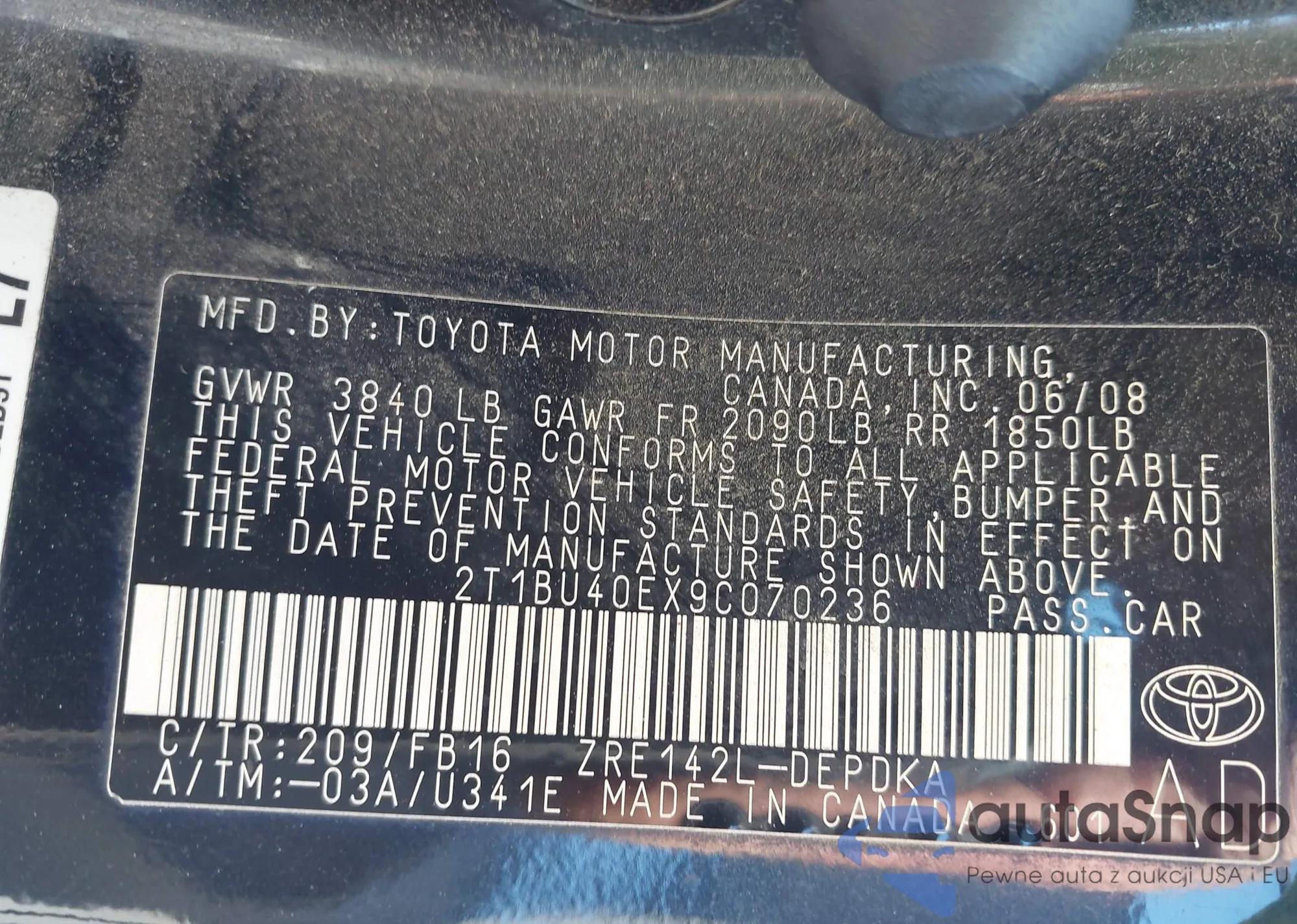 • VIN 2T1BU40EX9C070236