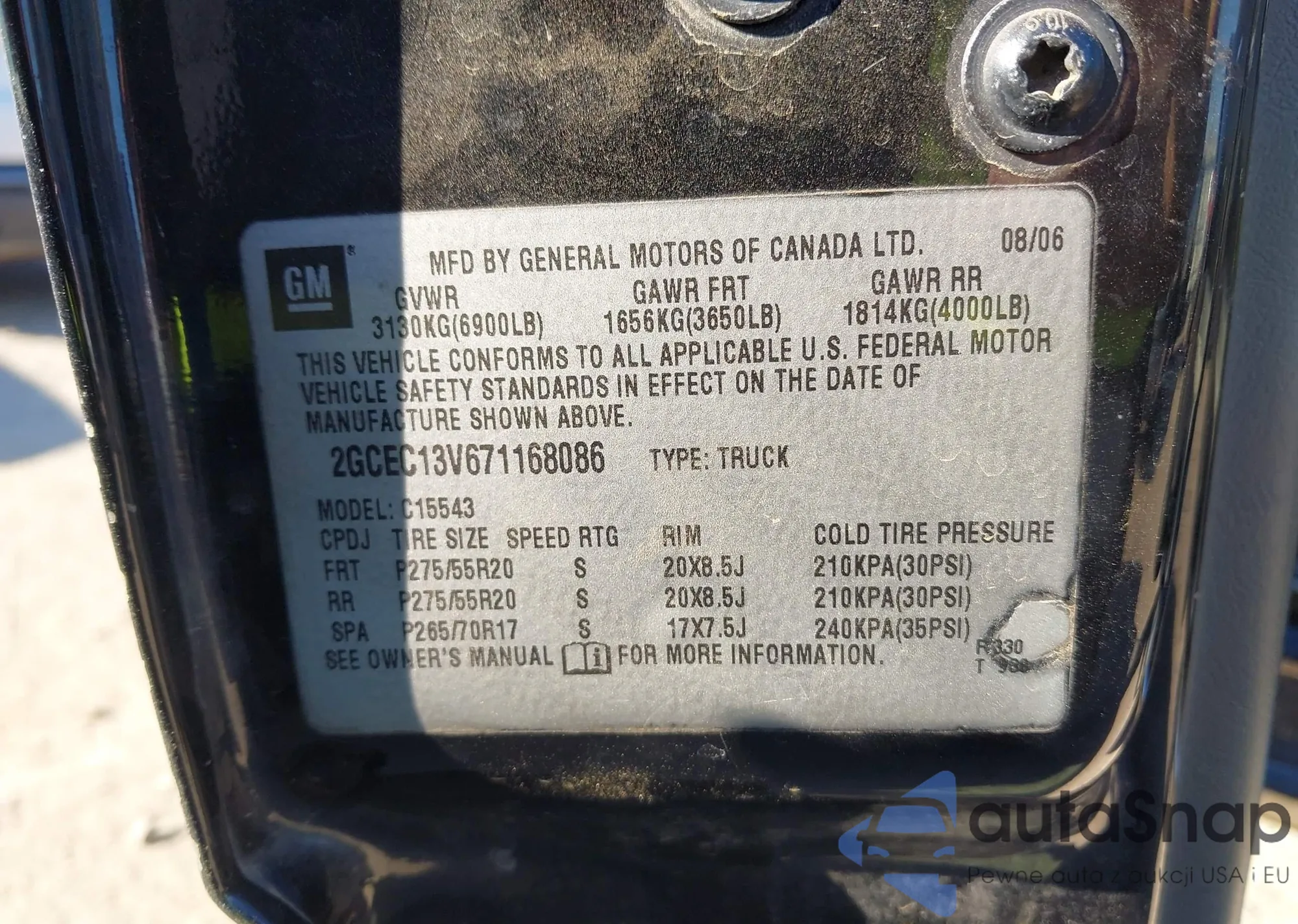 LOT: 43408894 VIN: 2GCEC13V671168086