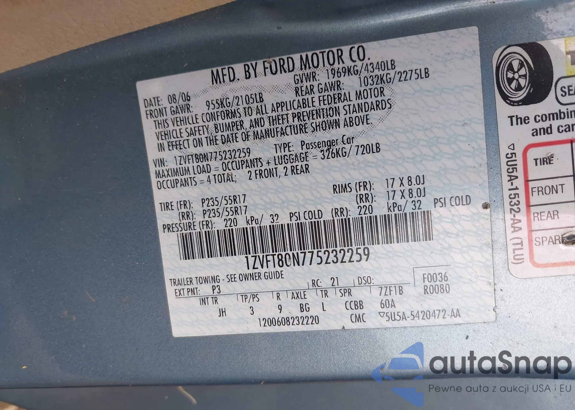 LOT: 43030979 VIN: 1ZVFT80N775232259