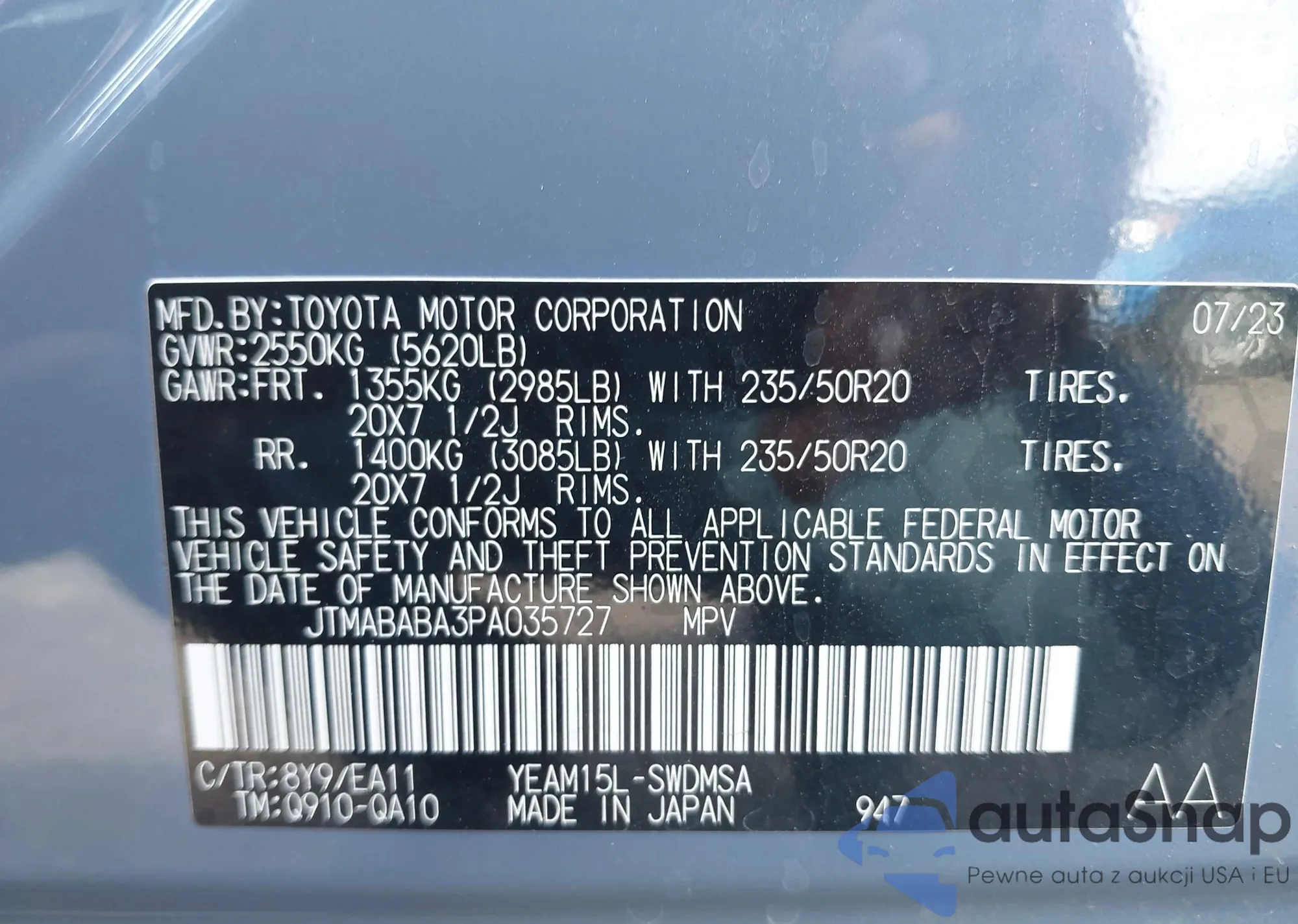 • VIN JTMZFREV7JJ747816