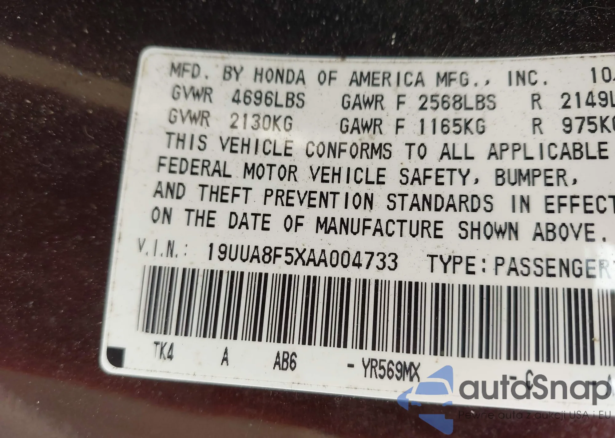 • VIN 4T1BF18B9XU299912