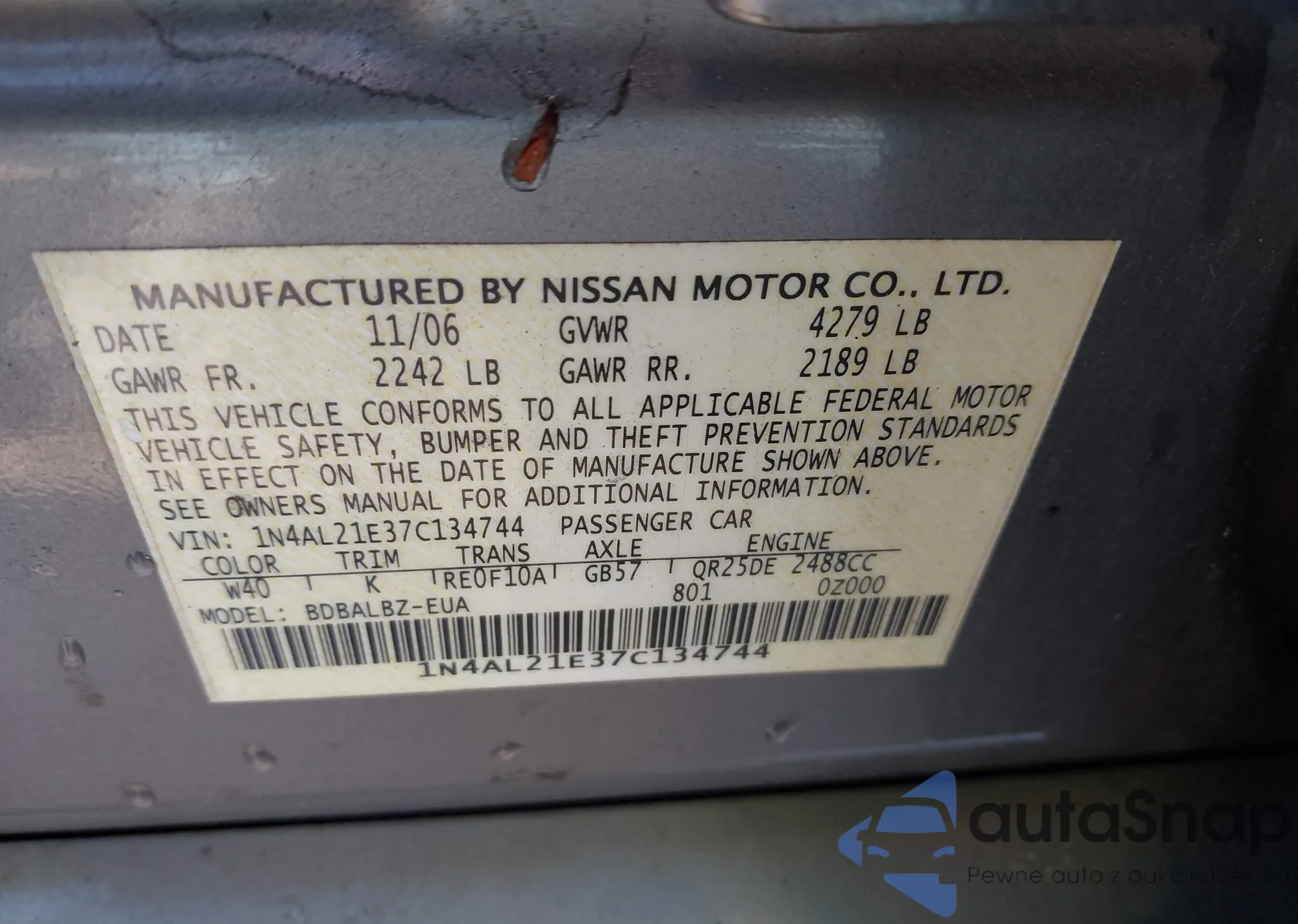 2007 Ford Mustang V6 Deluxe/V6 Premium z USA, uszkodzony, nr VIN 1ZVFT80N775232259