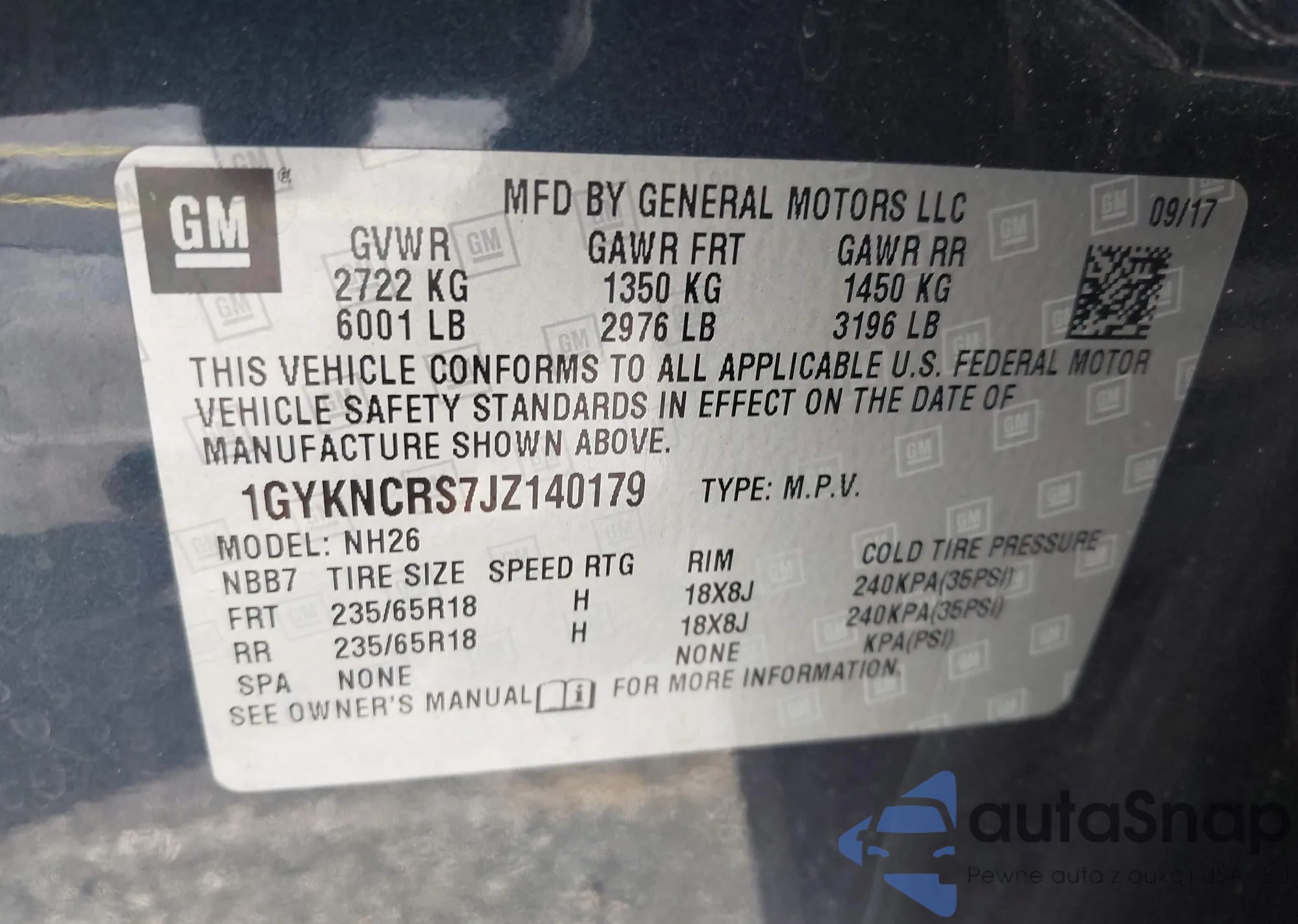 LOT: 43371907 VIN: 2GNALBEK5H1529114