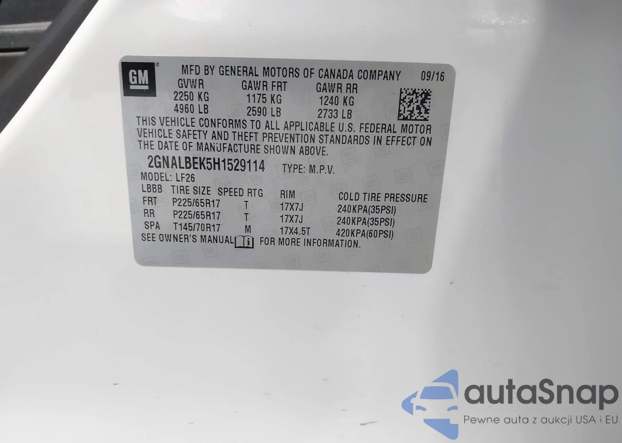 • VIN 2GNALBEK5H1529114