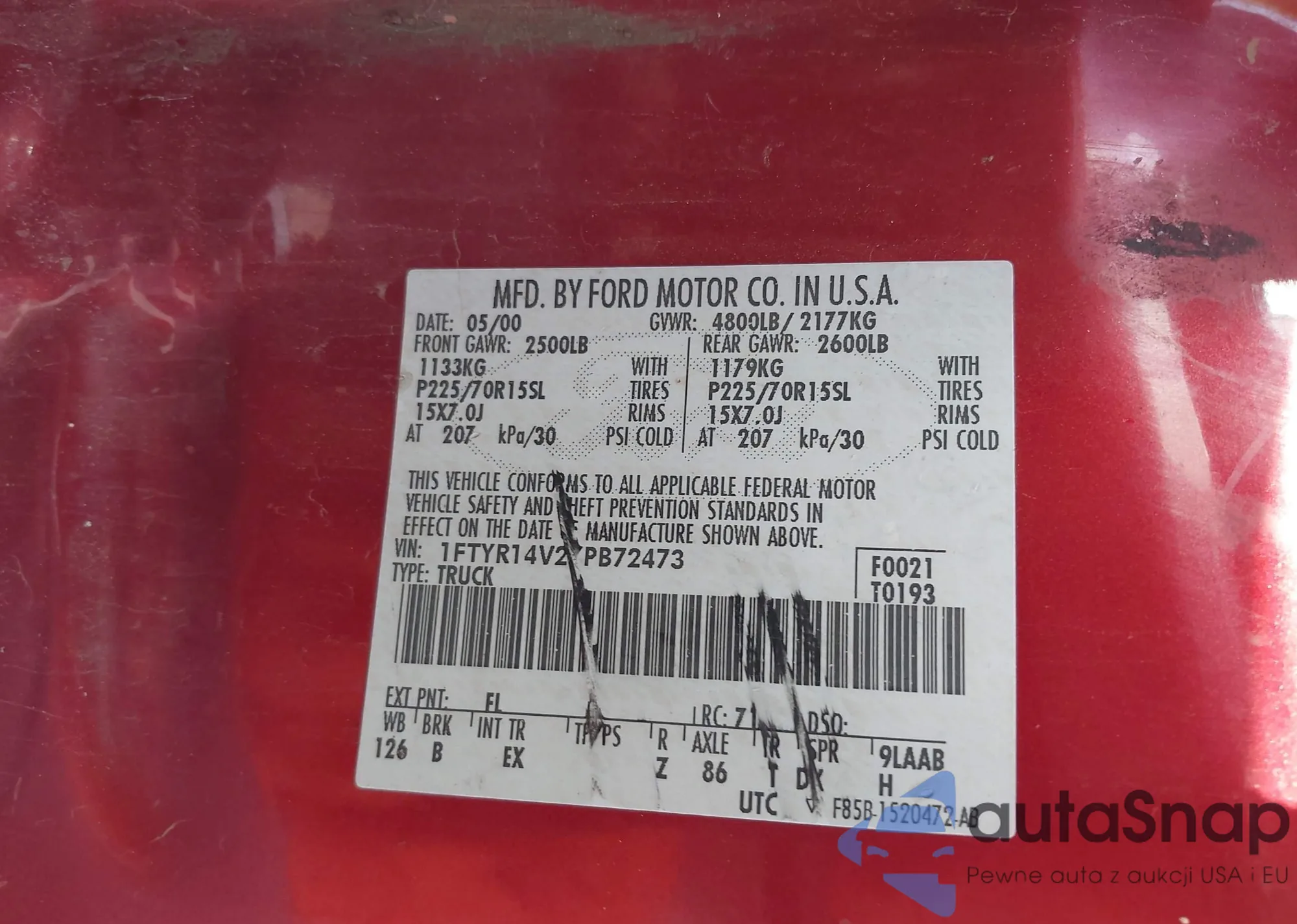 • VIN 1FTYR14V2YPB72473