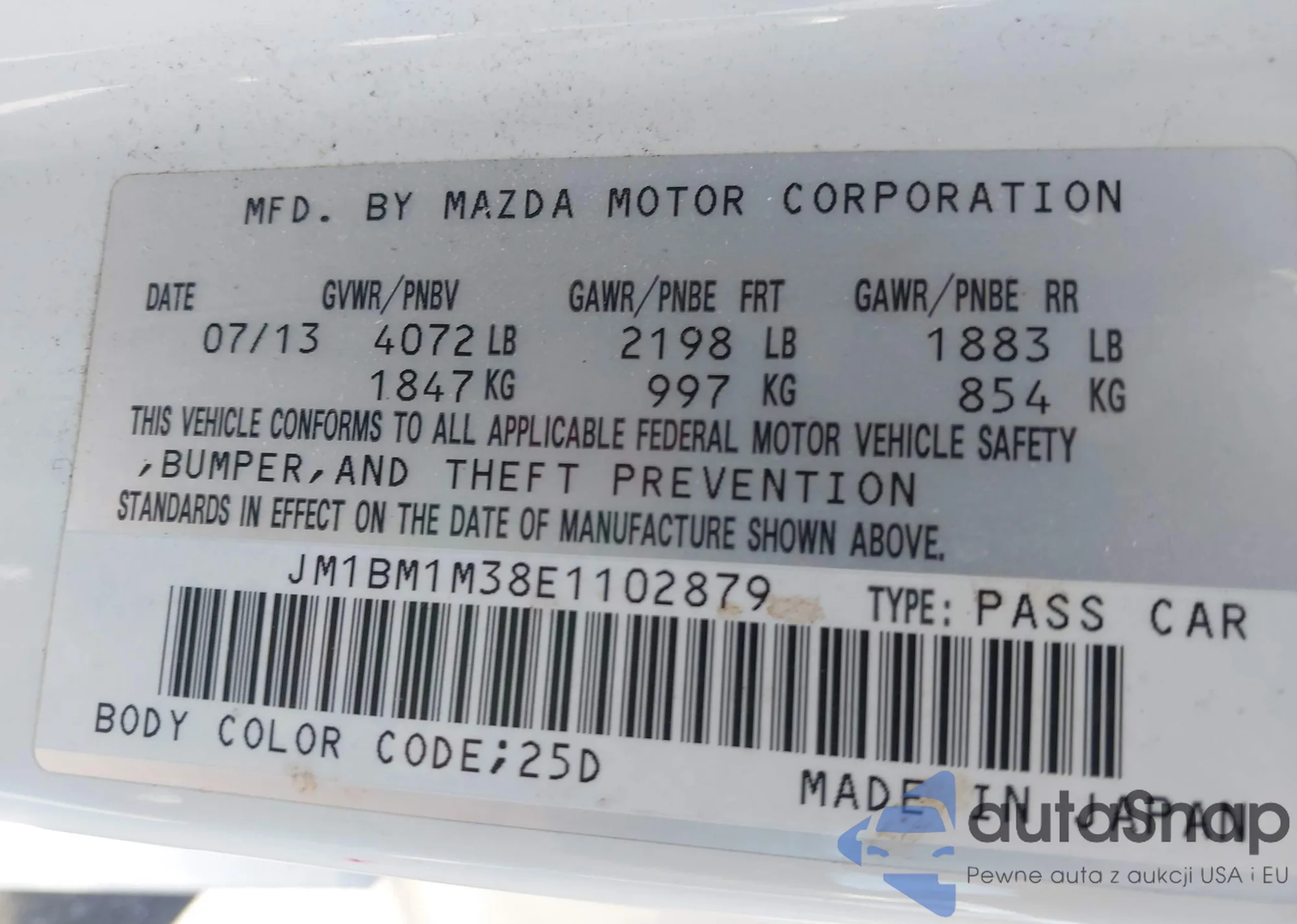LOT: 43414316 VIN: JM1GJ1W6XF1172861