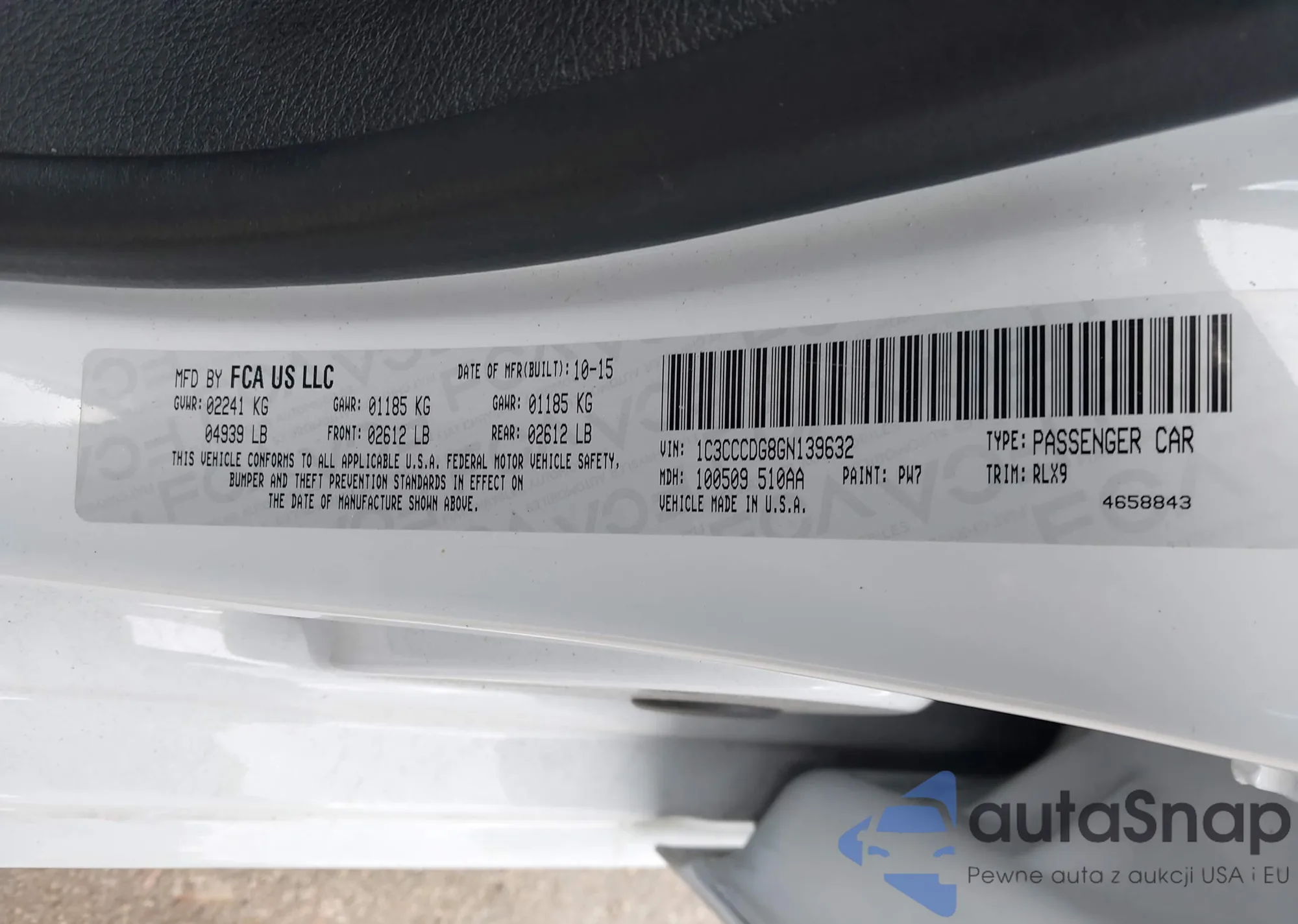 LOT: 43166463 VIN: 1C3CCCDG8GN139632