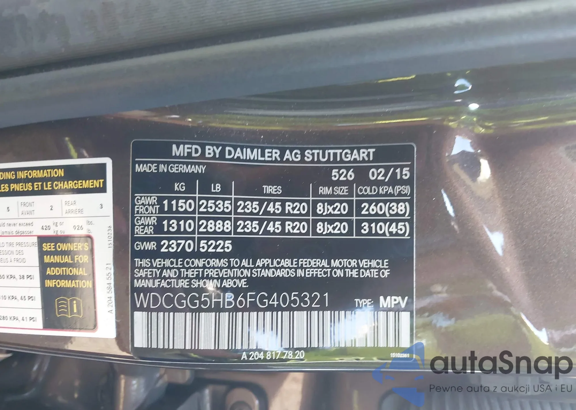 • VIN WDCGG5HB6FG405321