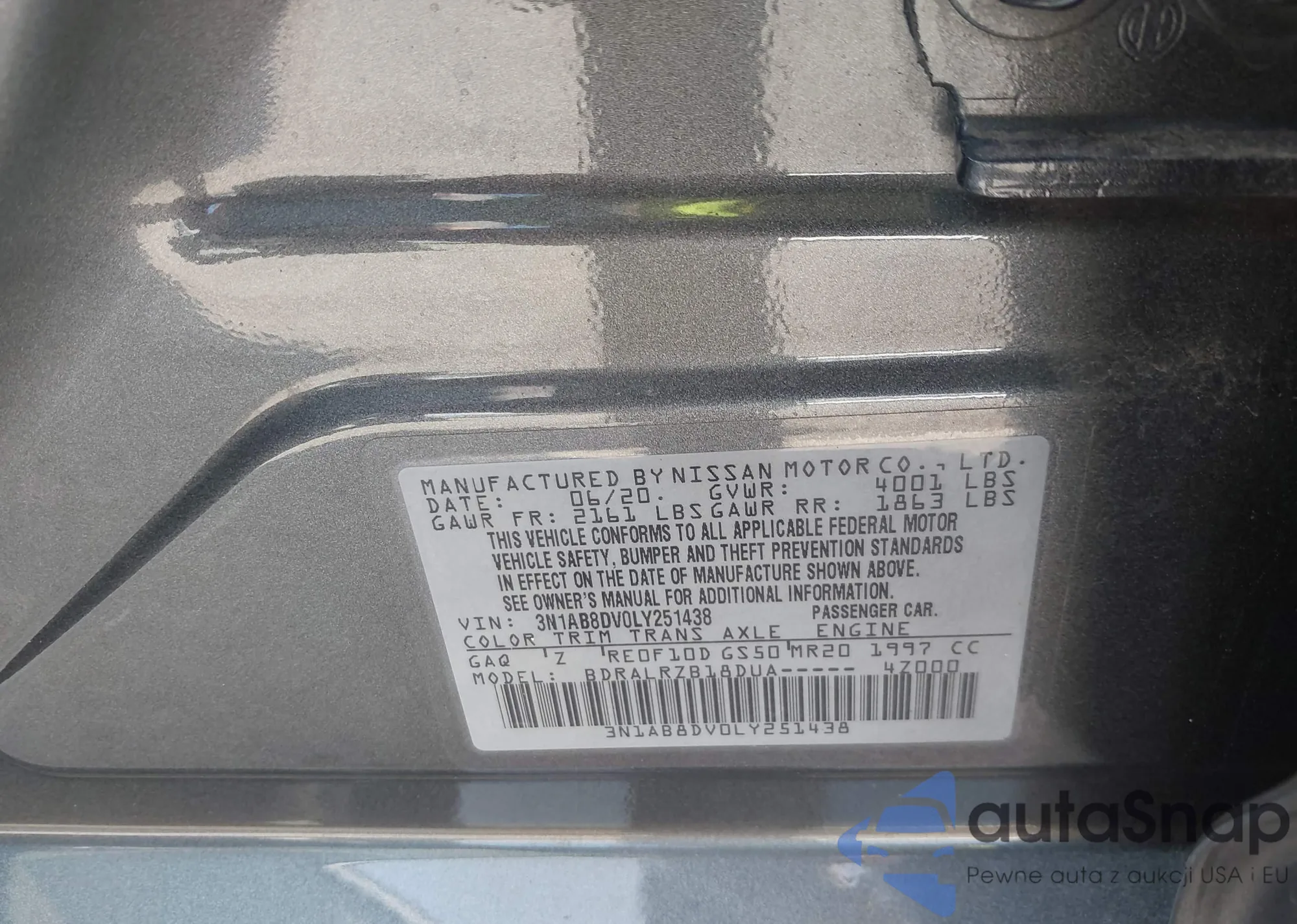 • VIN 3N1AB8DV0LY251438