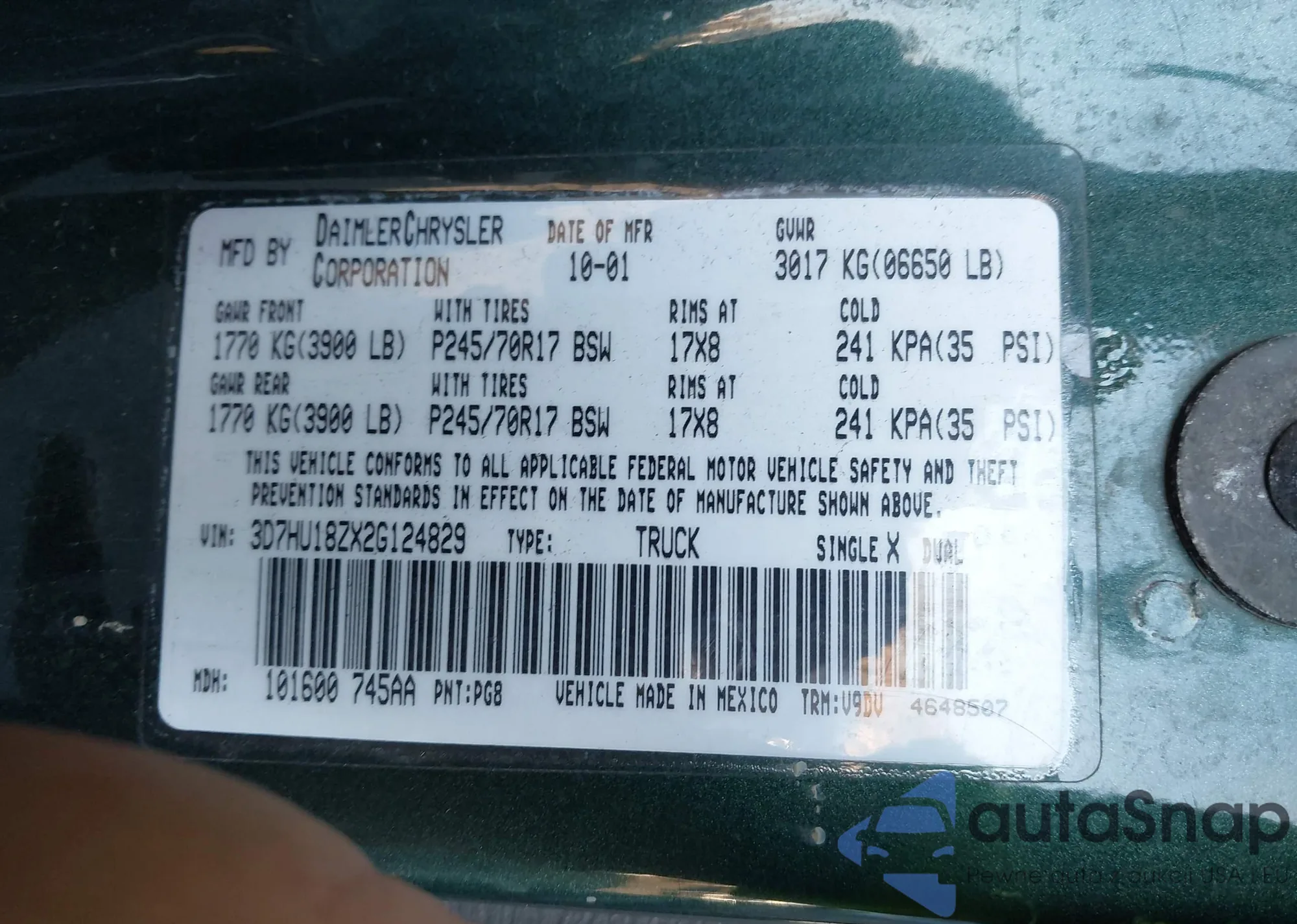• VIN 5TFRT541X7X014598