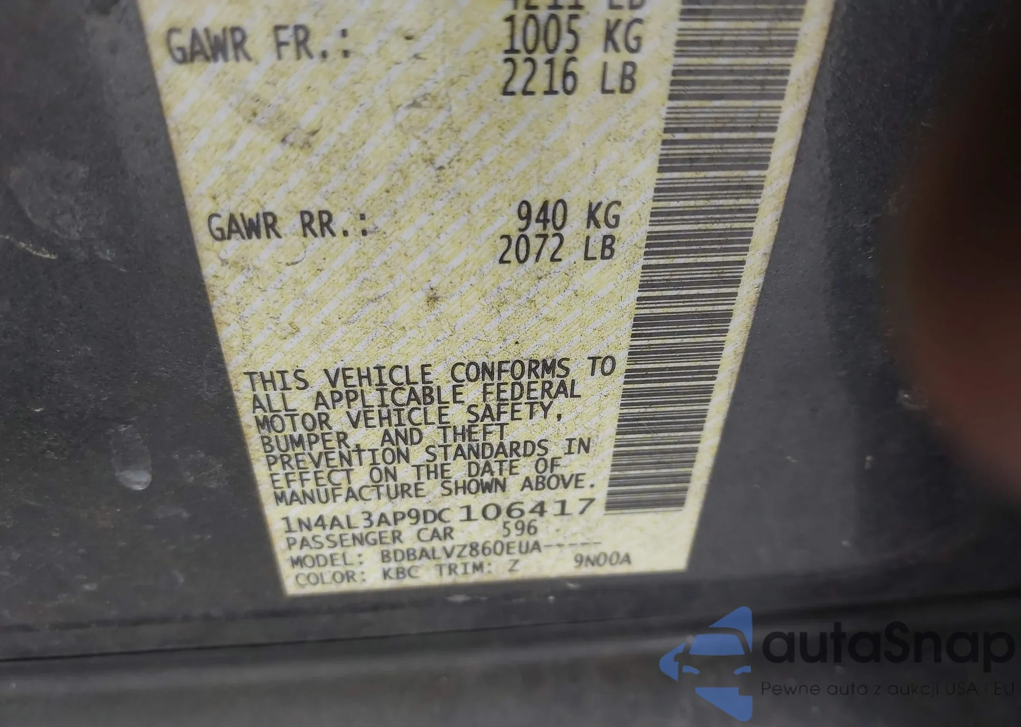 • VIN 1N4AL3AP9DC106417