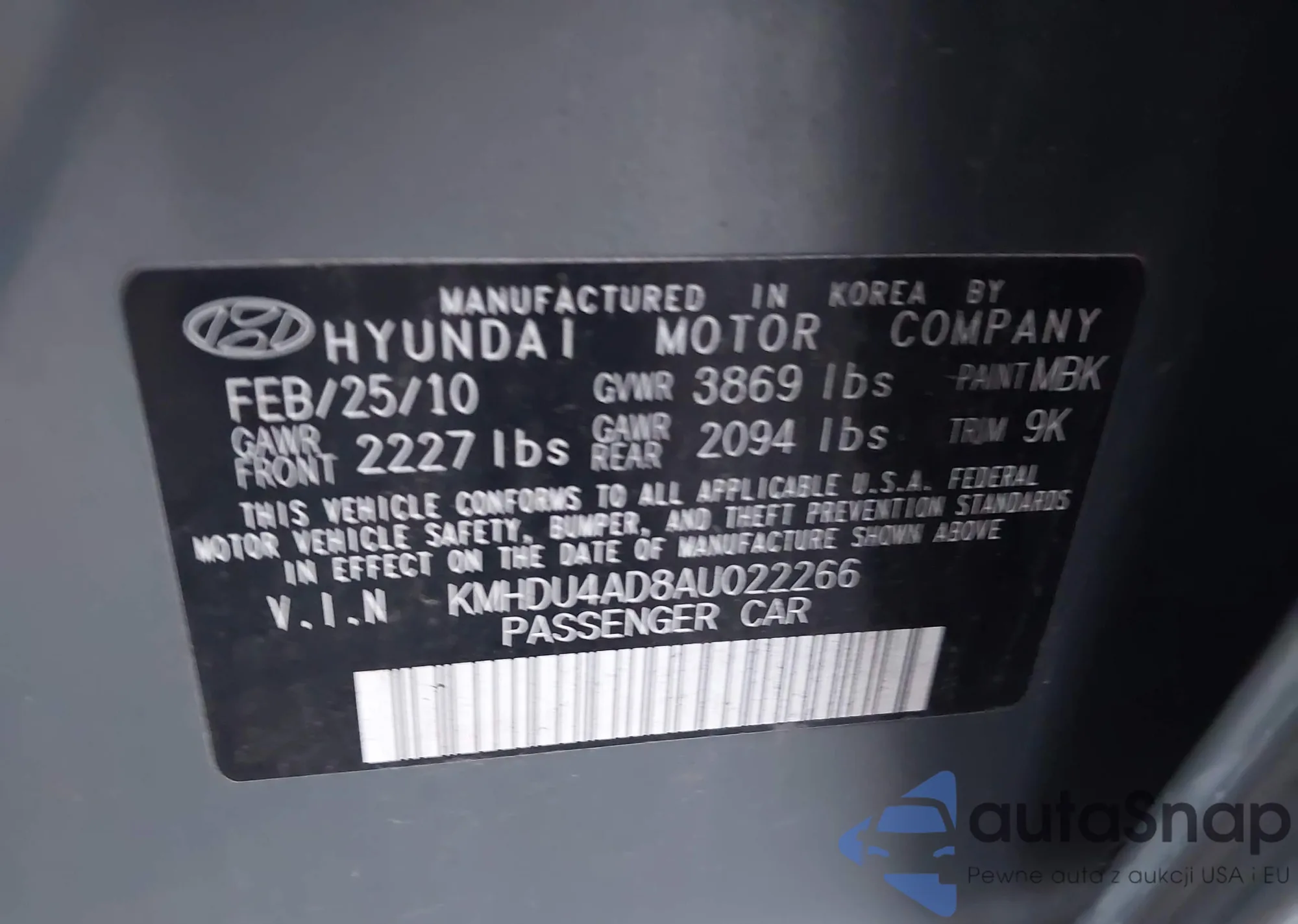 • VIN KMHDU4AD8AU022266