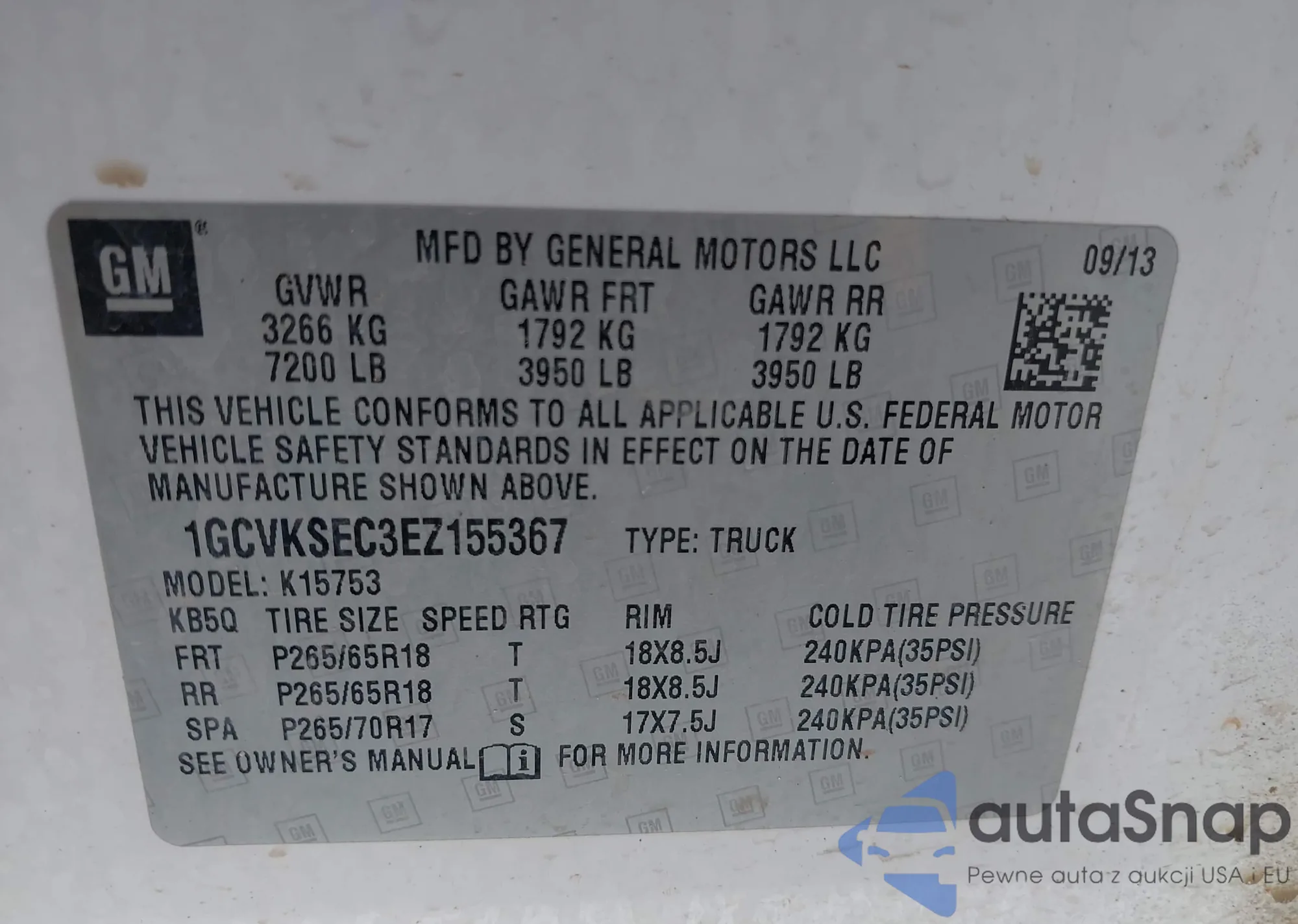 • VIN 1GCVKSEC3EZ155367