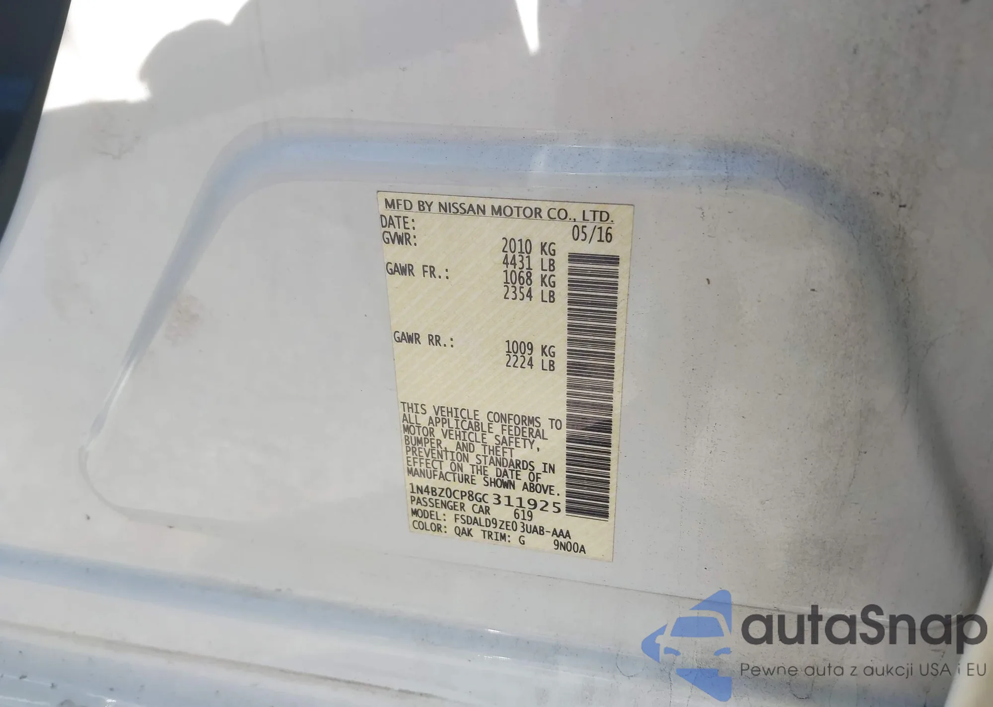 LOT: 43103831 VIN: WA1L2AFP0GA072557