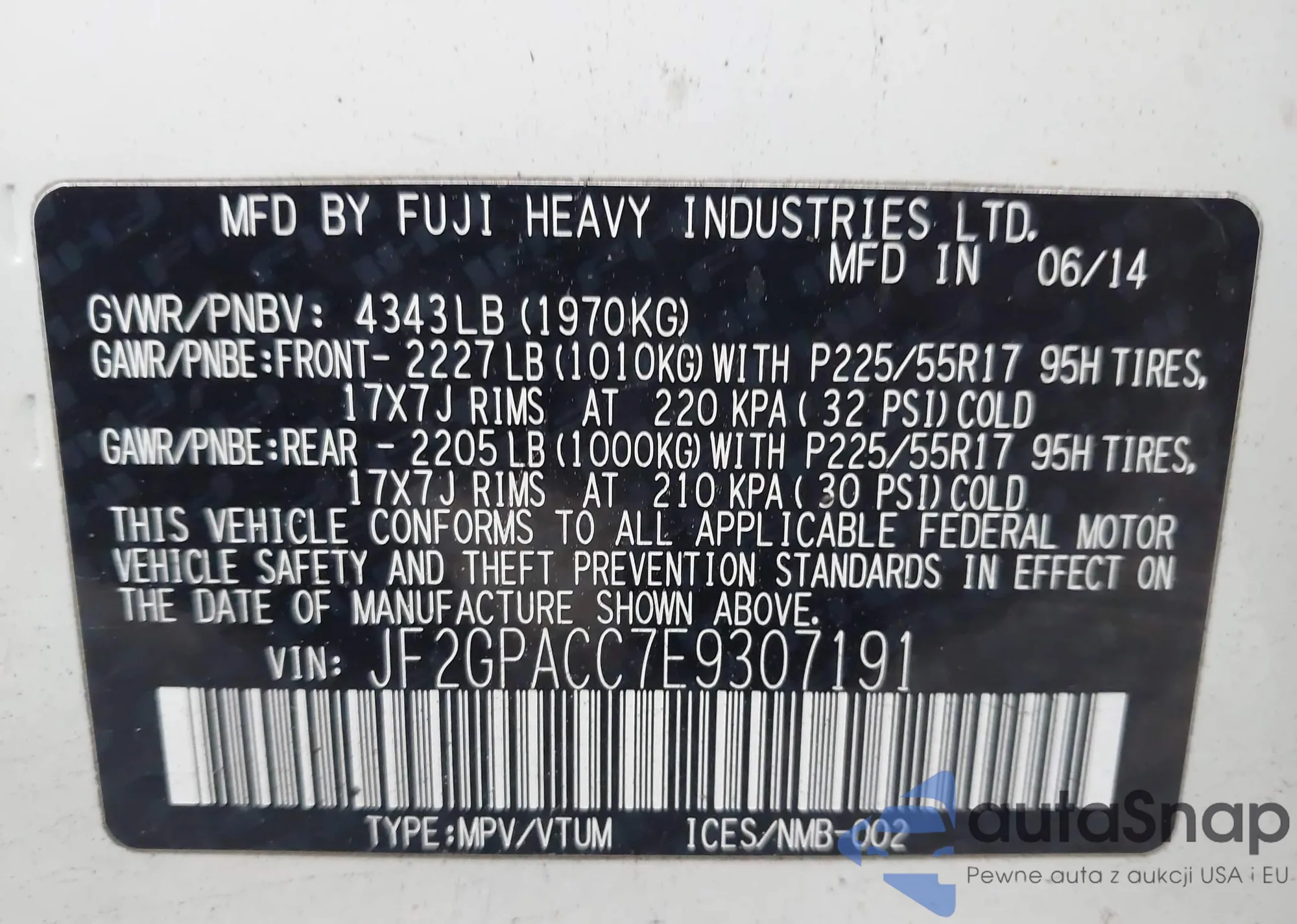• VIN JF2SJAGC5FH440108