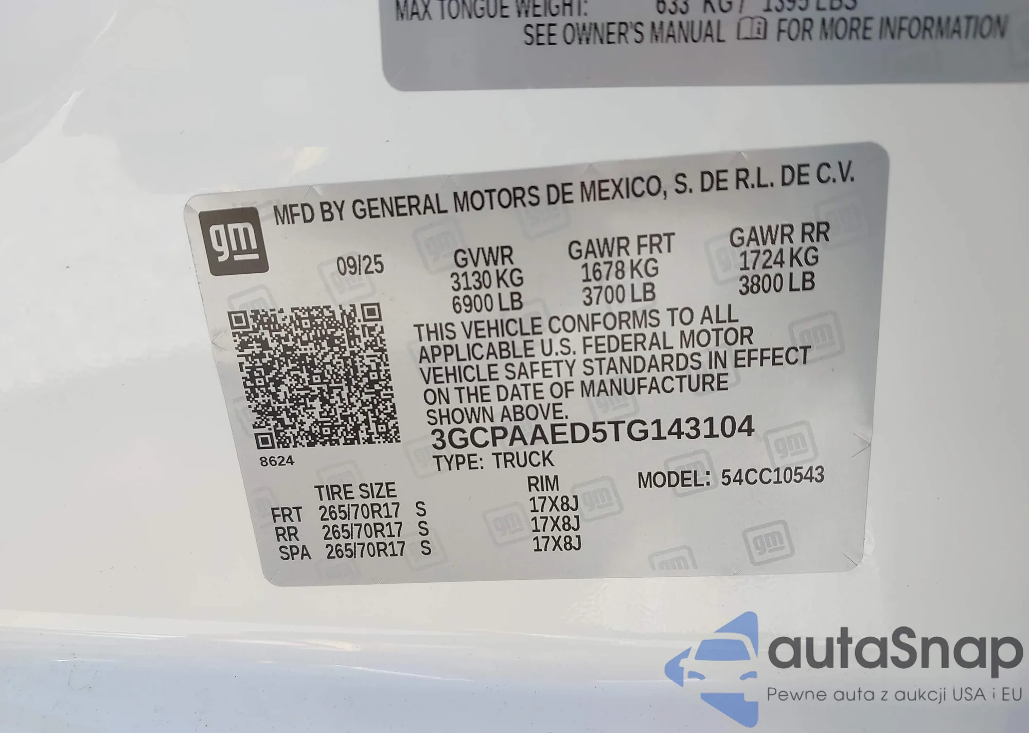 • VIN 3GCPAAED5TG143104