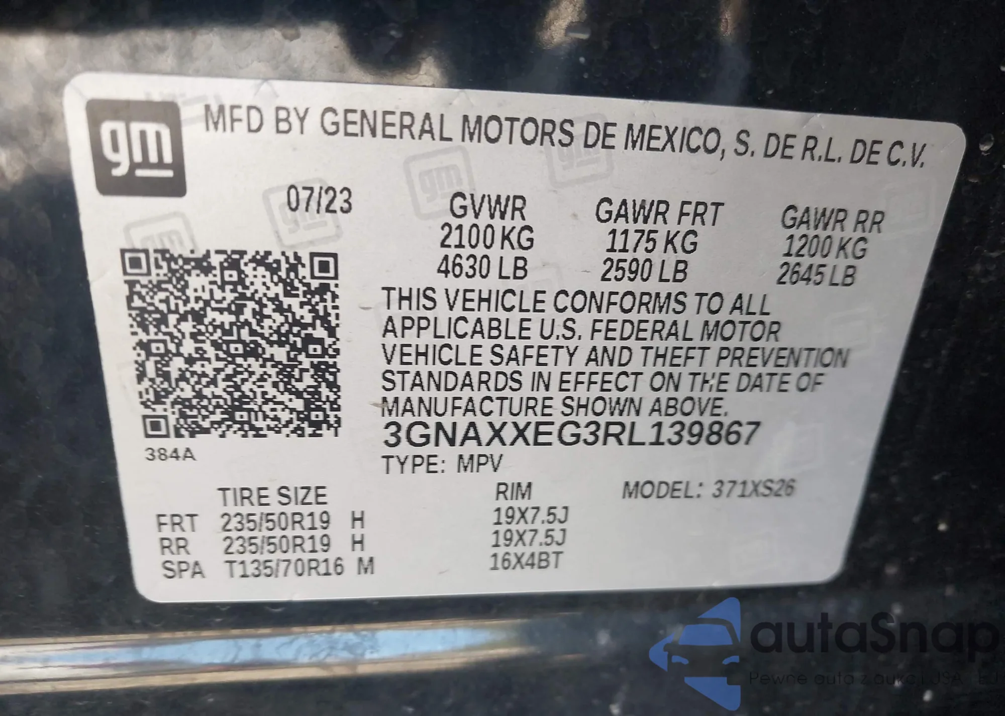 LOT: 42985146 VIN: 5YJYGDEE8LF040956