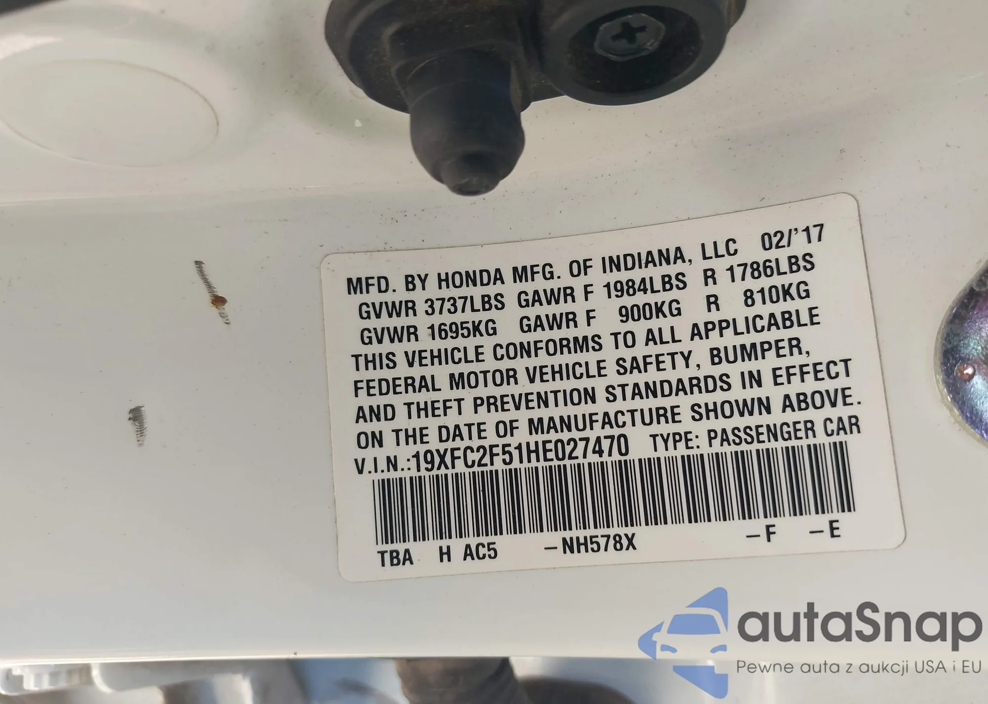 LOT: 43438677 VIN: 19XFC2F51HE027470