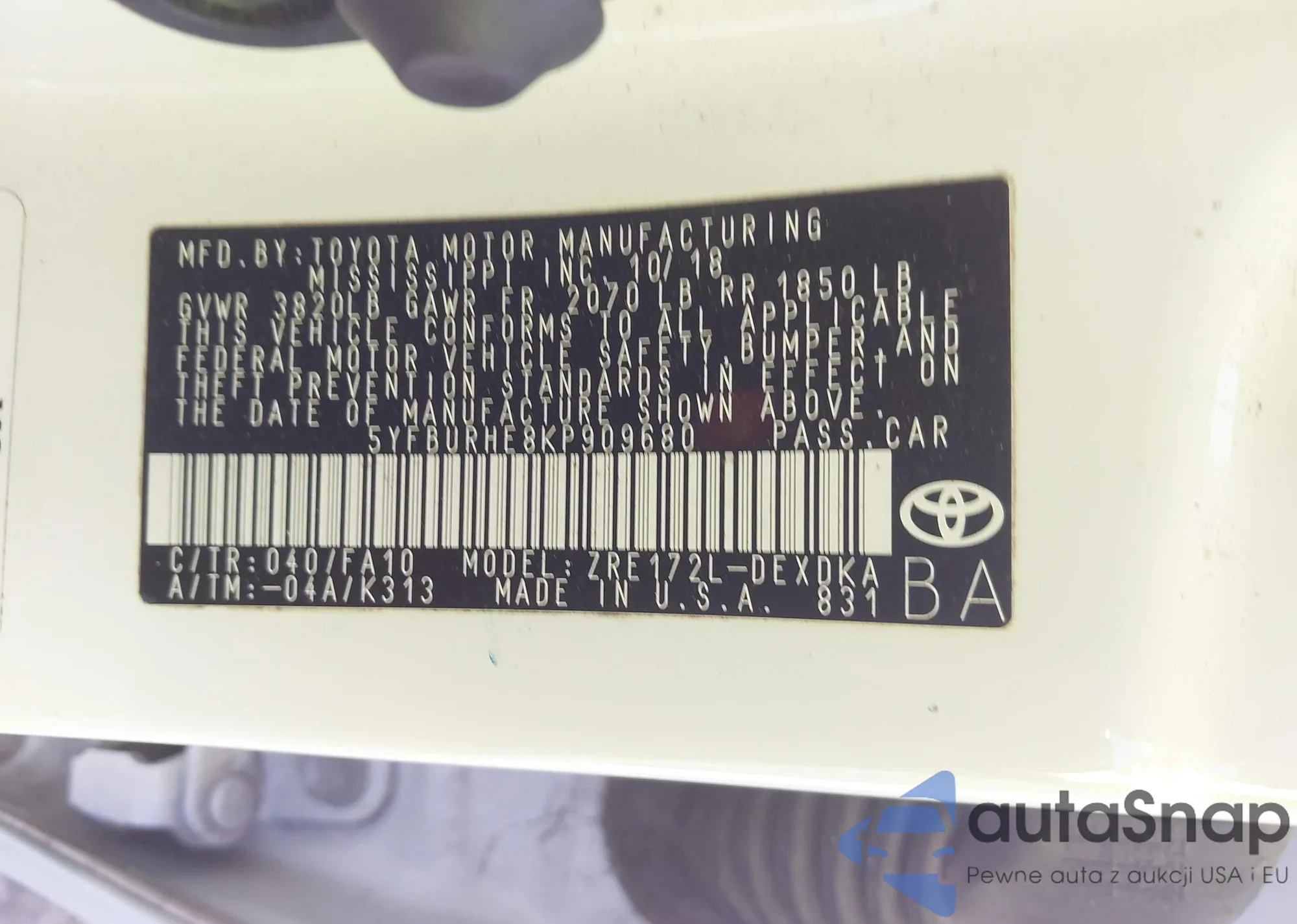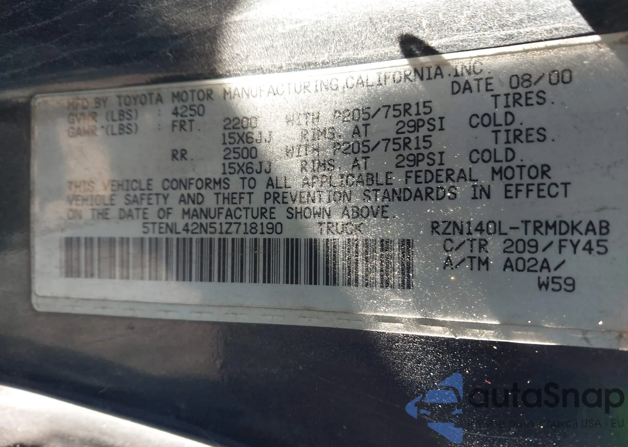 • VIN 1FTYR2CM3KKB08249