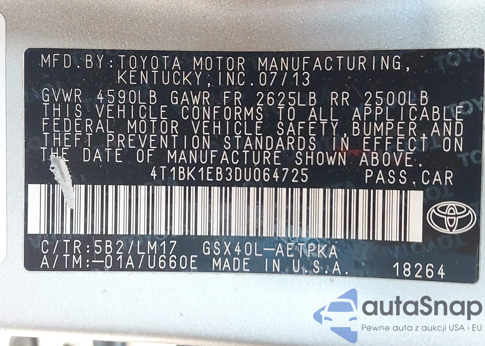 LOT: 43441718 VIN: 4T1BE46K47U507685