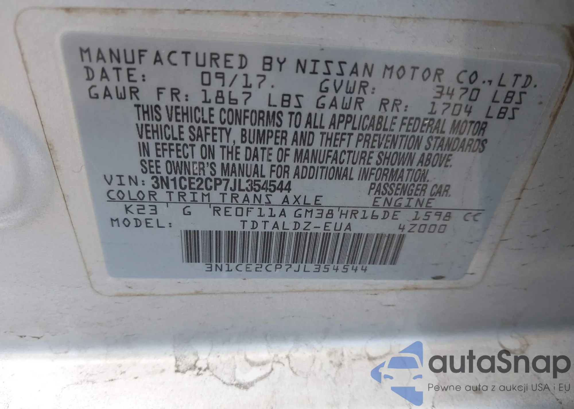 • VIN 3N1CE2CP7JL354544