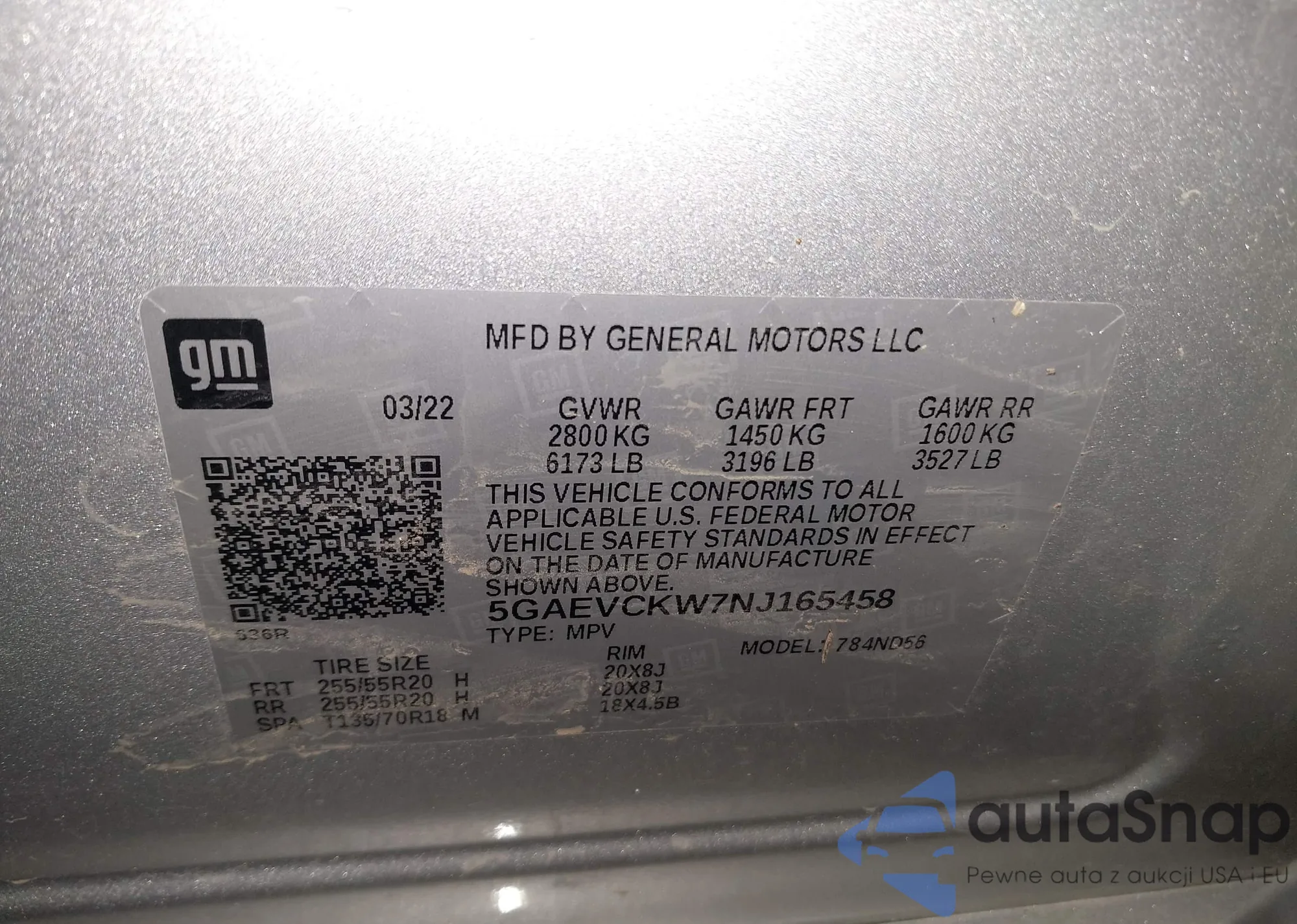 • VIN 5GAEVCKW7NJ165458
