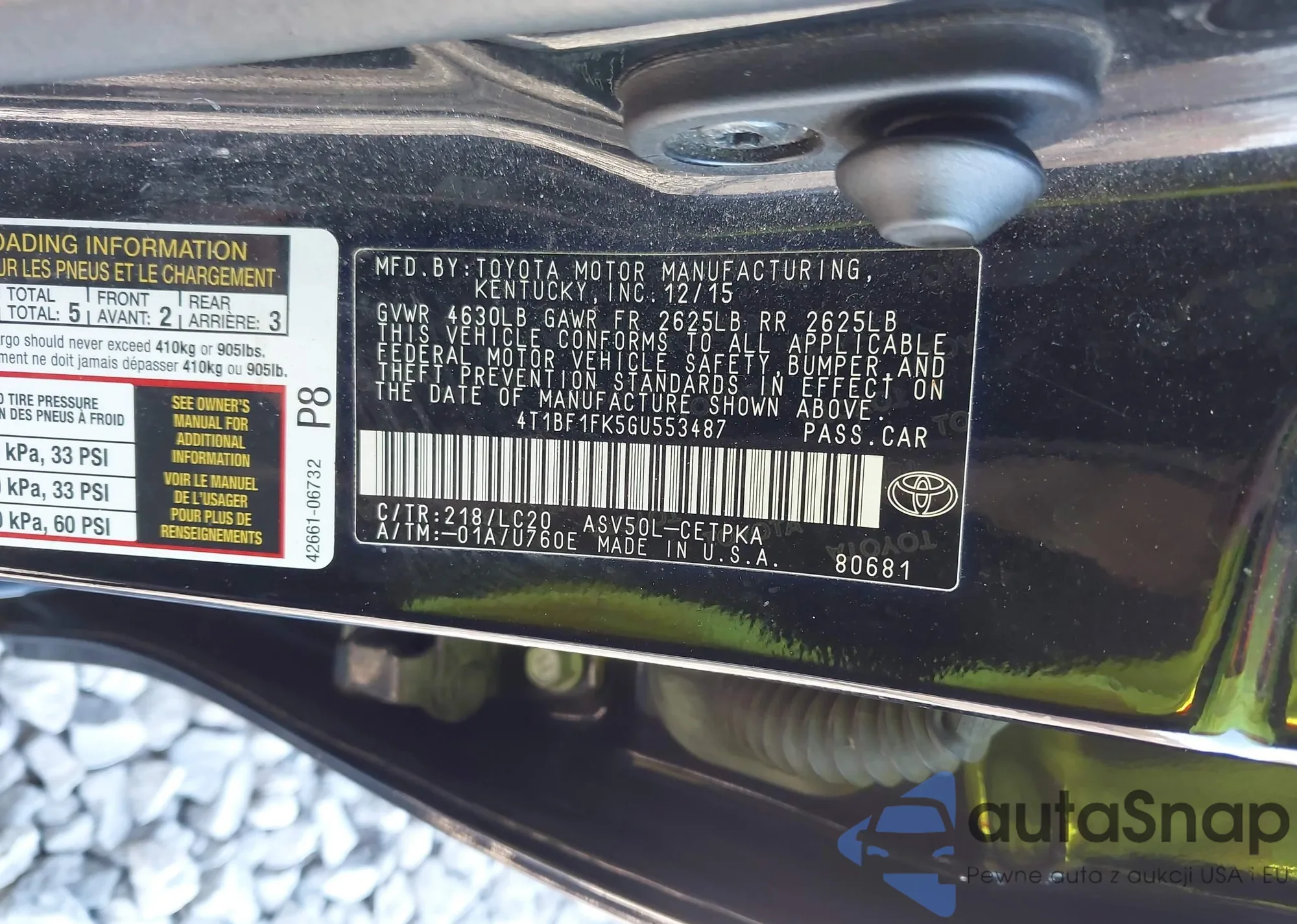 • VIN 5J6TF3H31DL001345