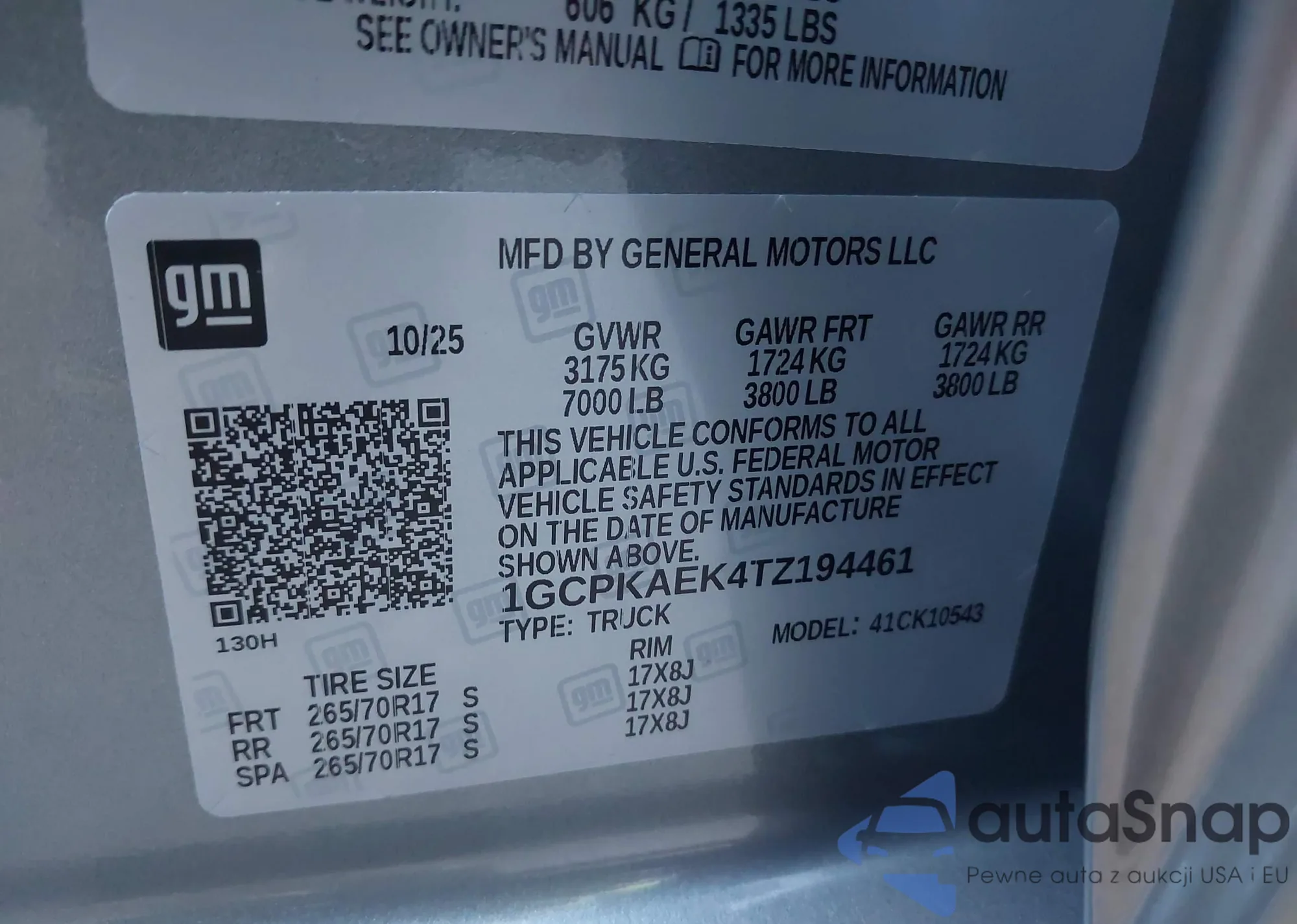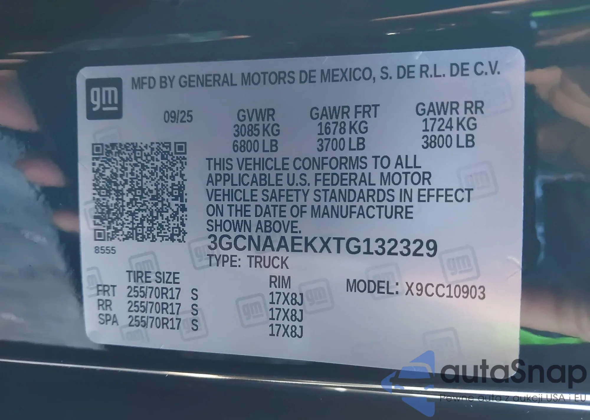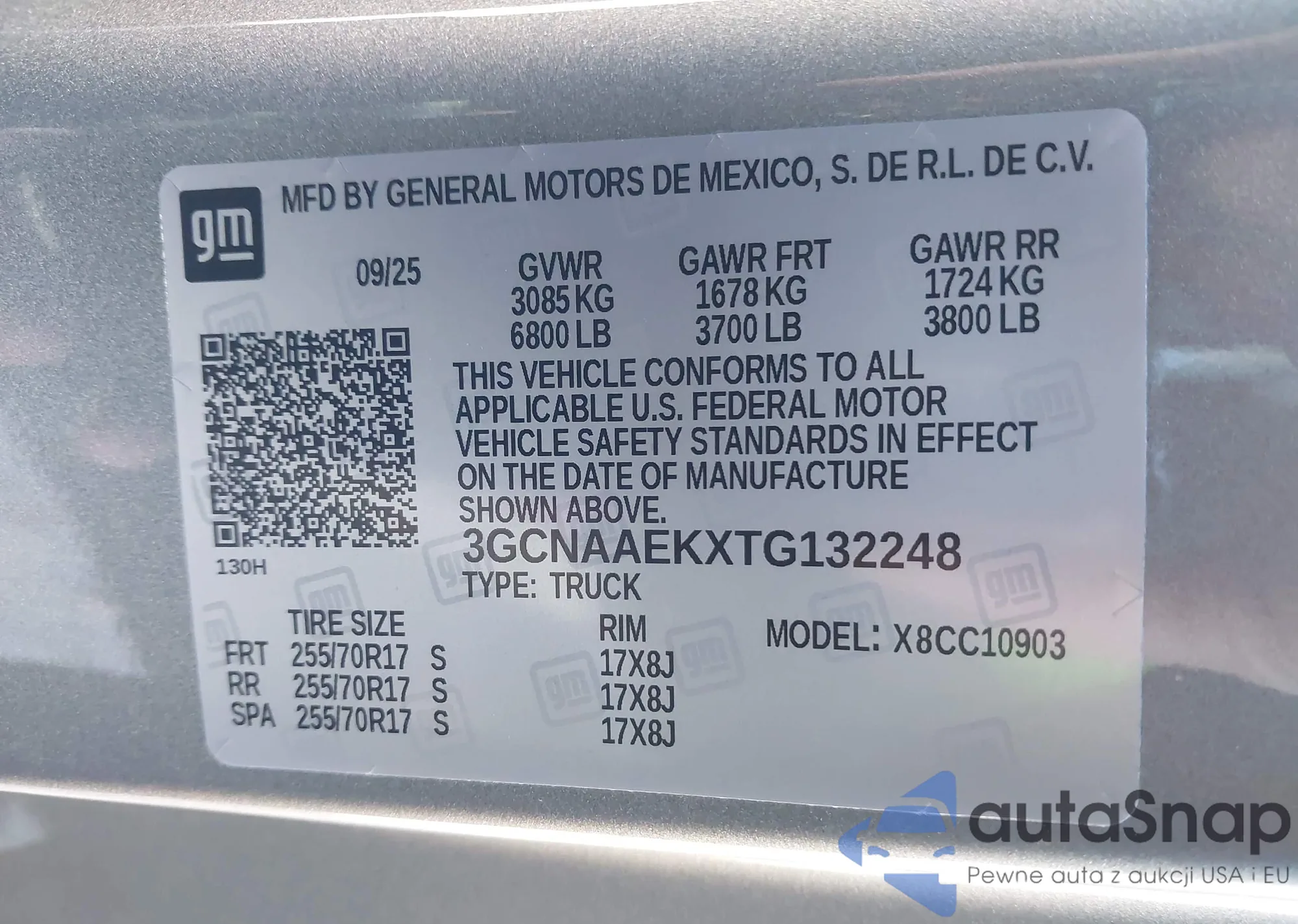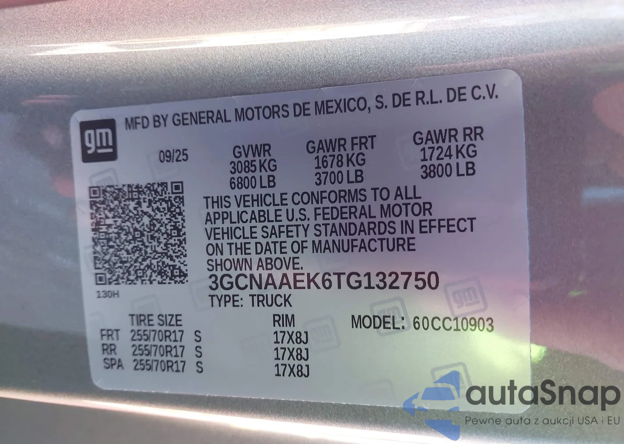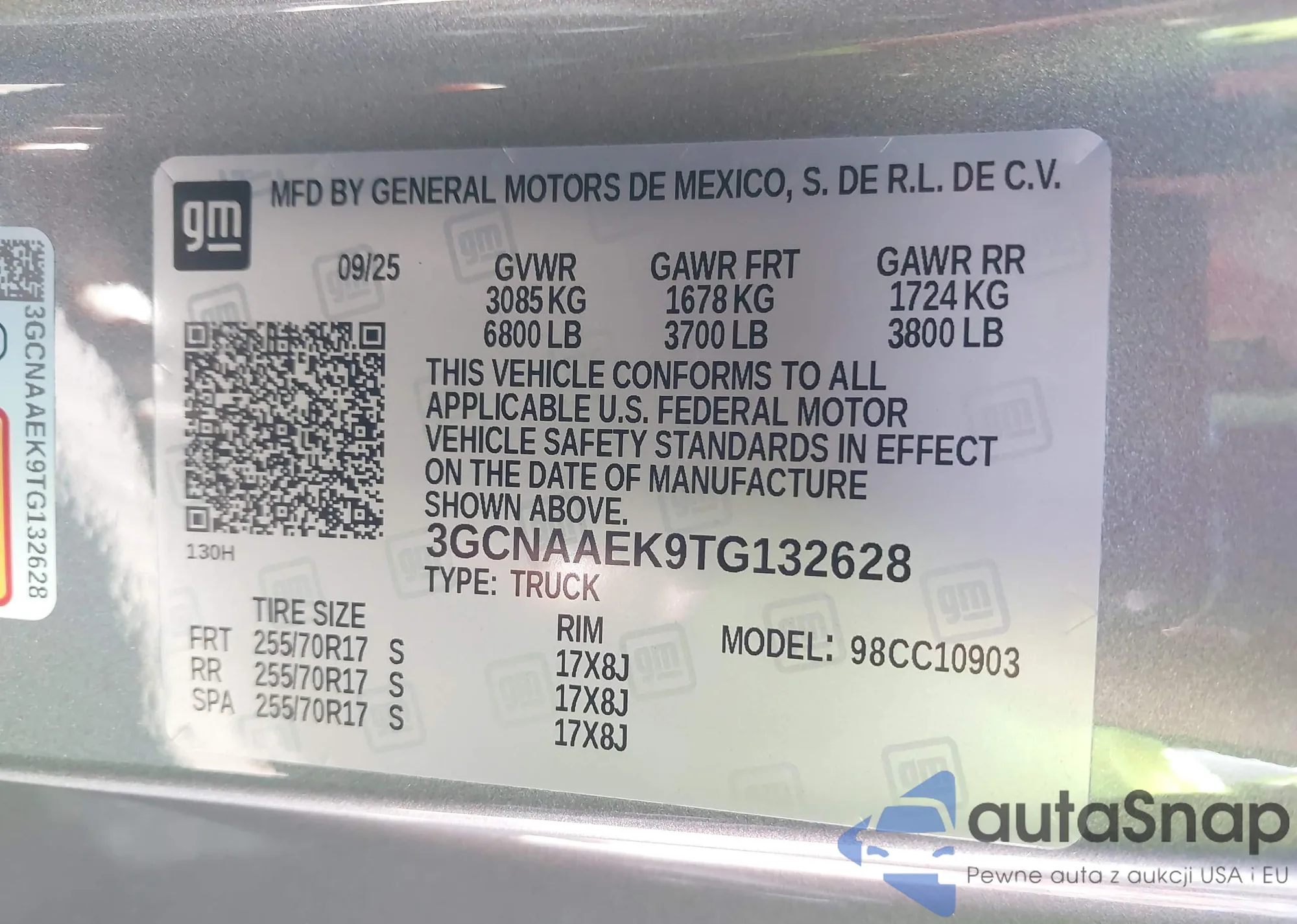 • VIN 3GCNAAEK9TG132628