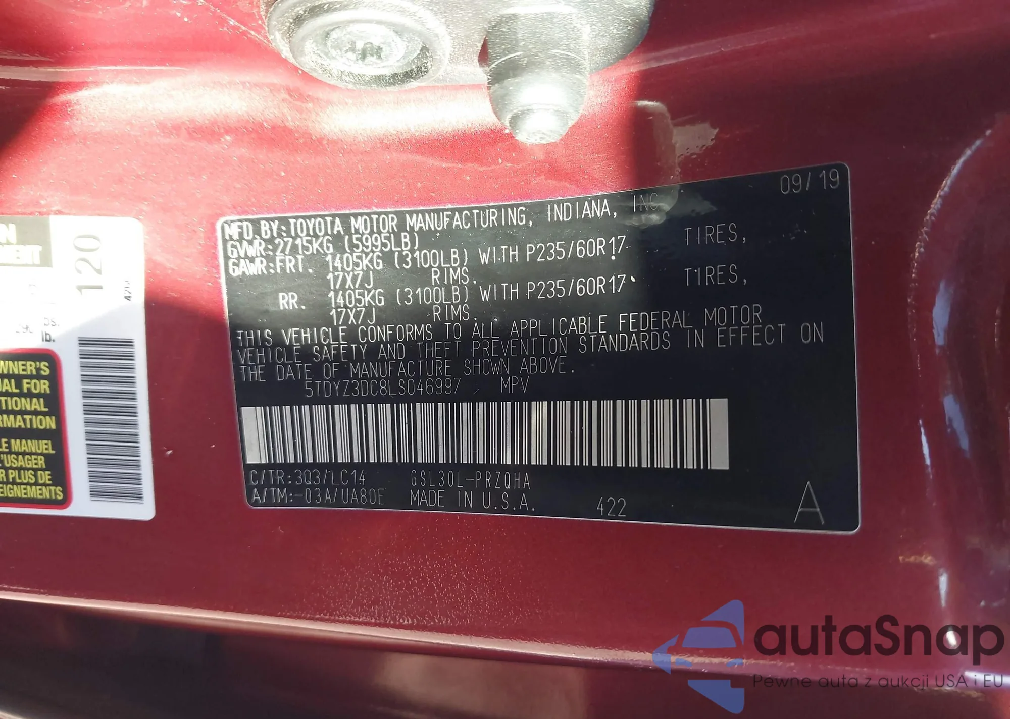 • VIN 5TDYZ3DC8LS046997