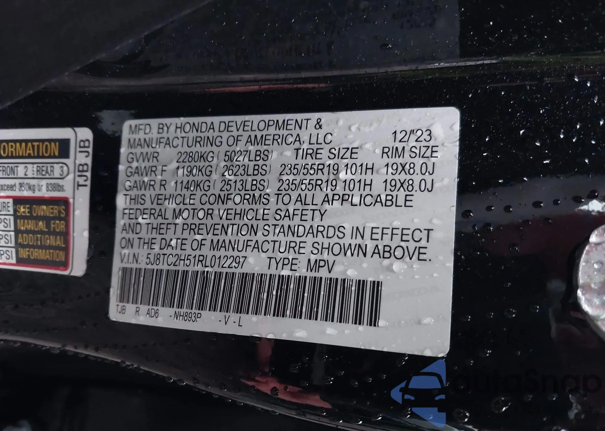 • VIN 5J8TC2H51RL012297