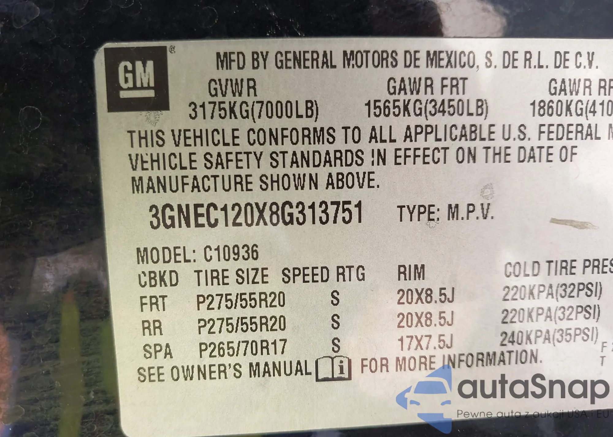 • VIN 000000FPY32004481