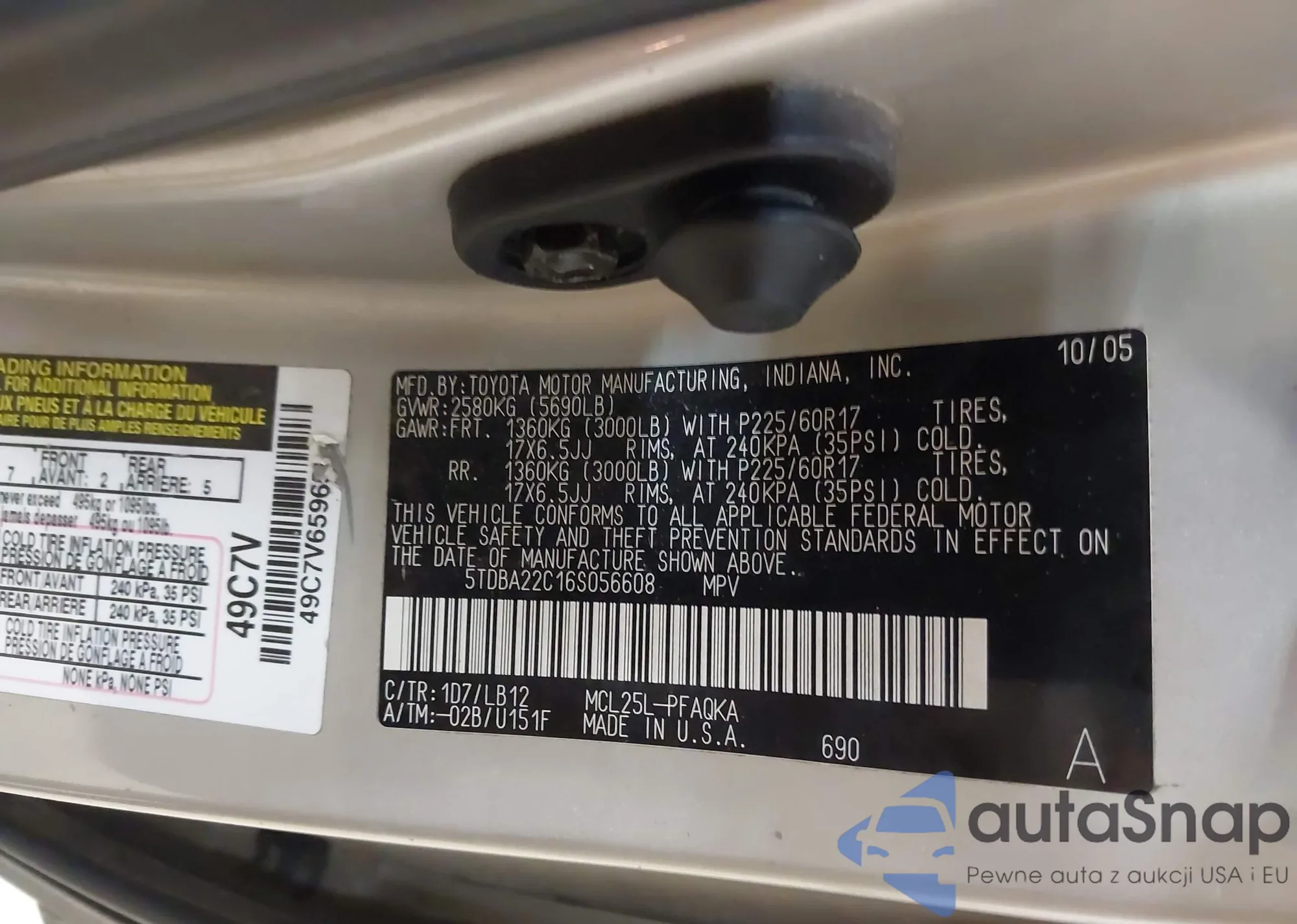 LOT: 43685577 VIN: 5TDBA22C16S056608