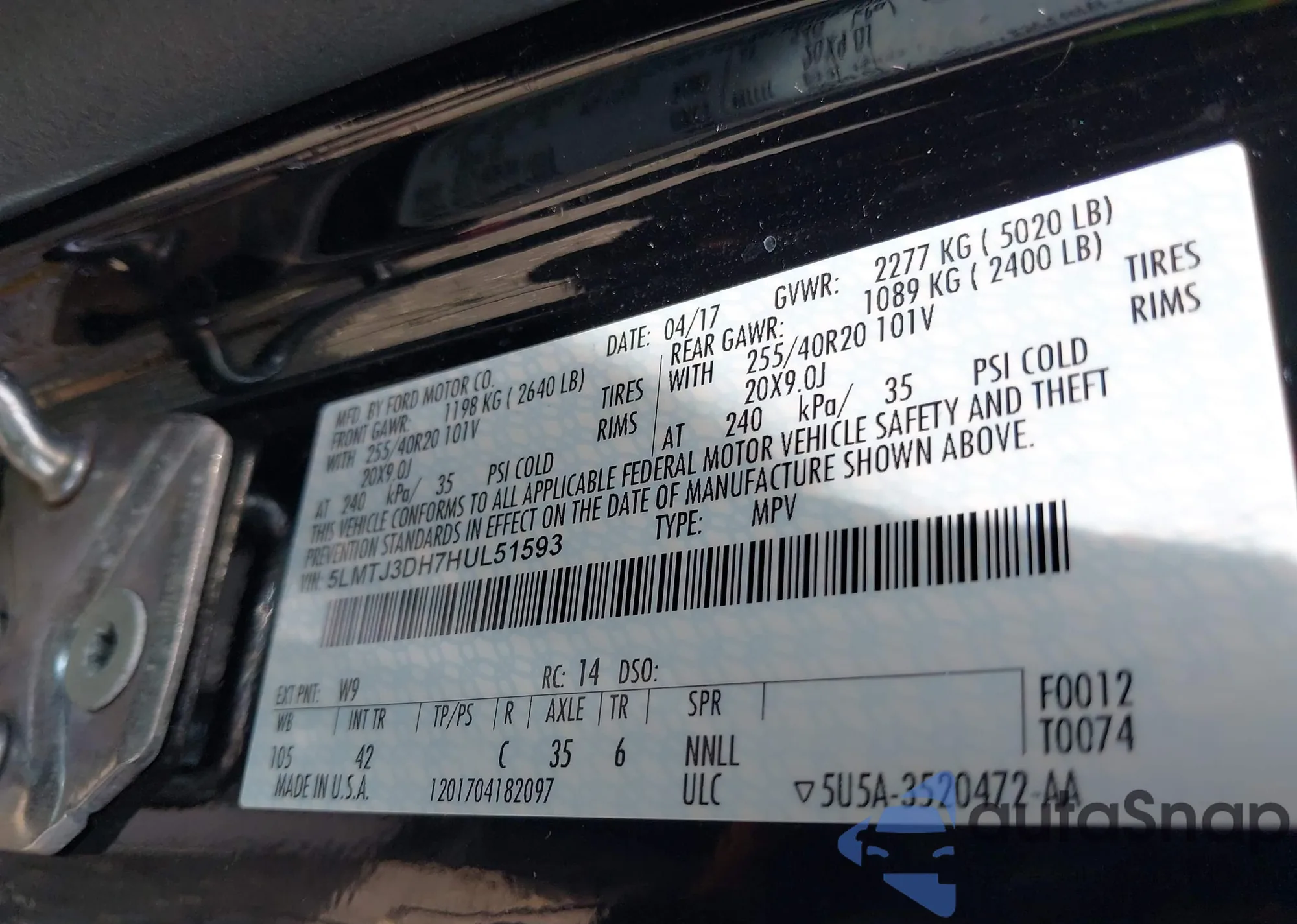 LOT: 43691002 VIN: 3FAHP0JA7CR376310