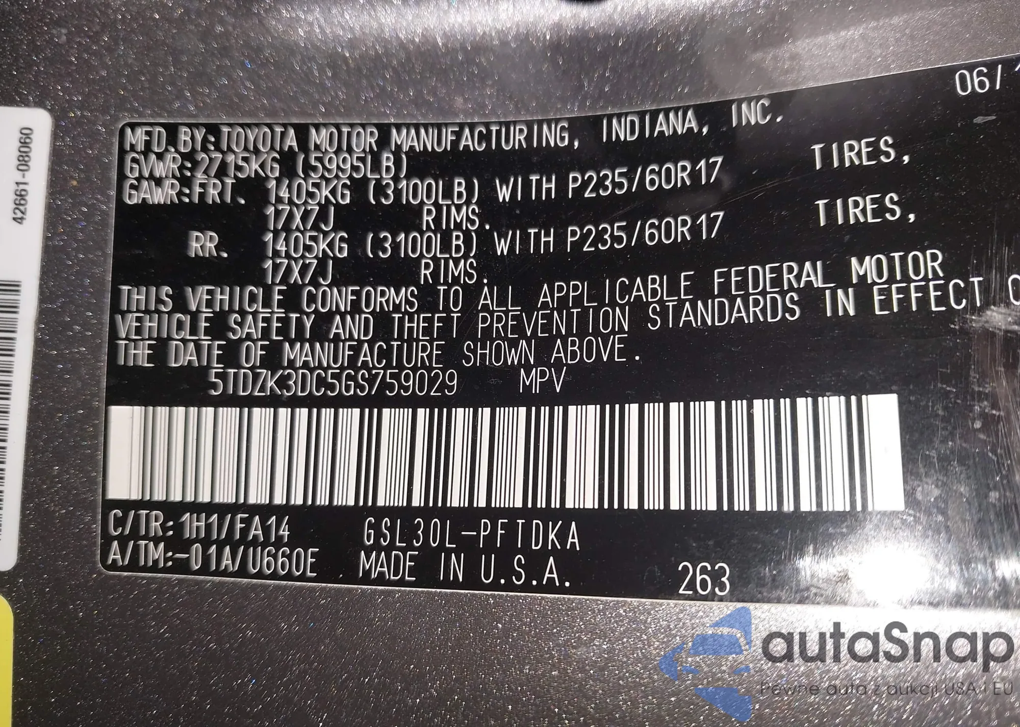 • VIN 5TDZK3DC5GS759029