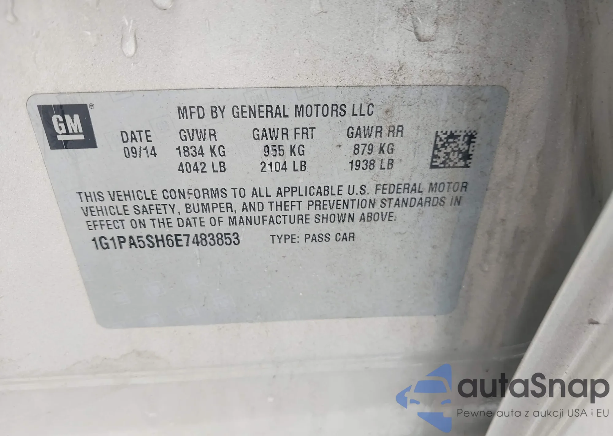 LOT: 43843067 VIN: 1G1PA5SH6E7483853