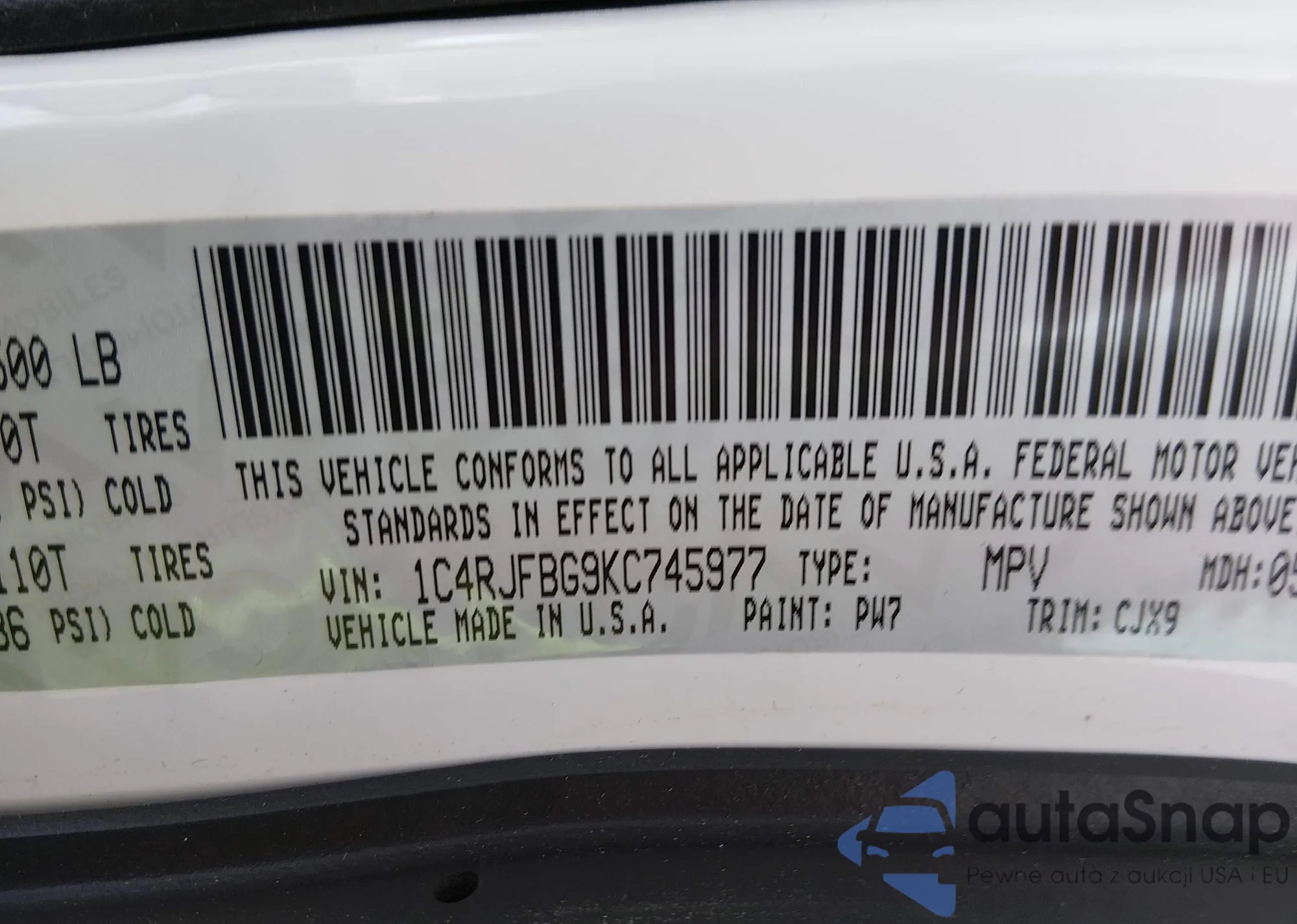 • VIN 1C4RJFBG9KC745977