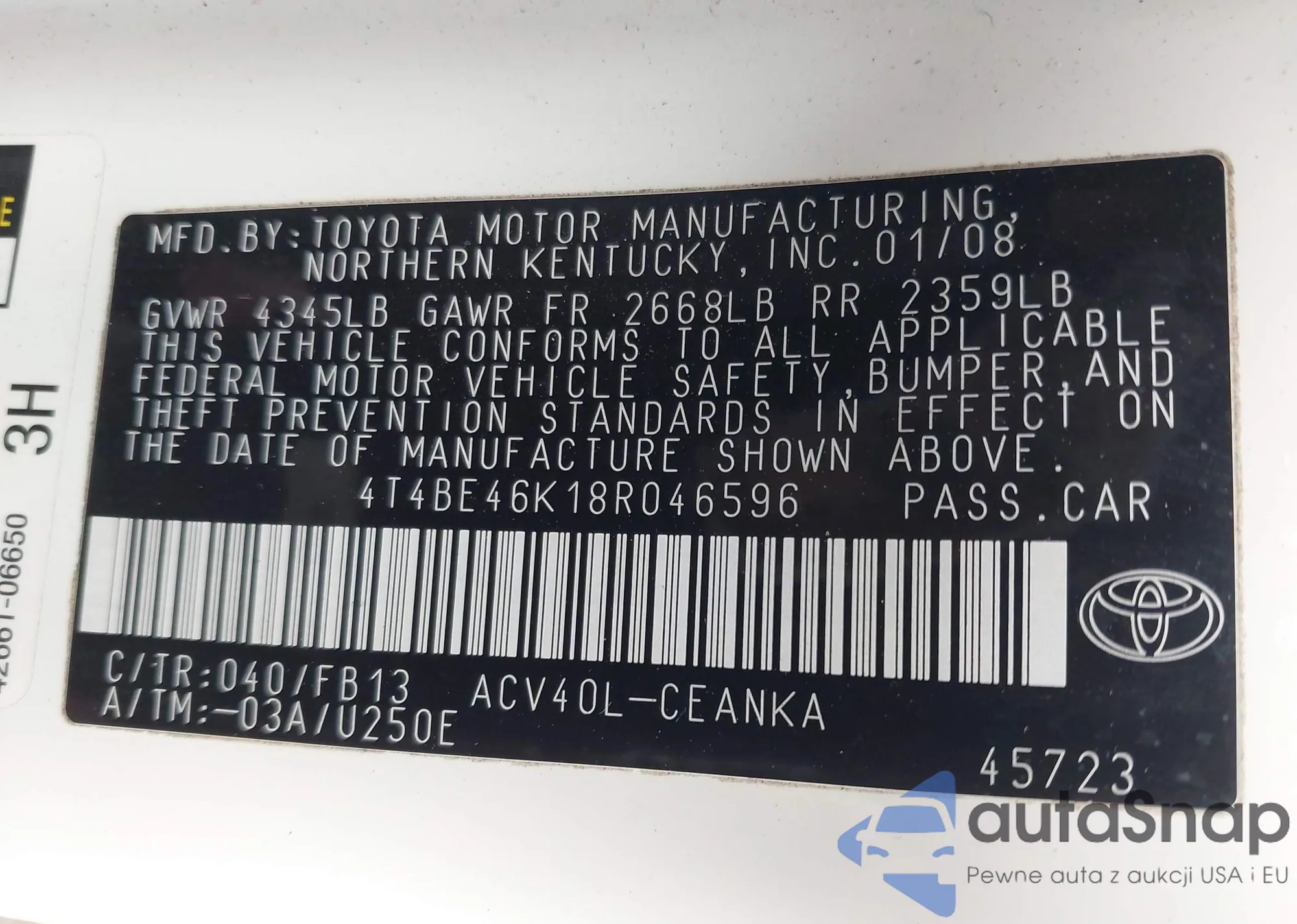 LOT: 43734495 VIN: KMHCM36C87U021715