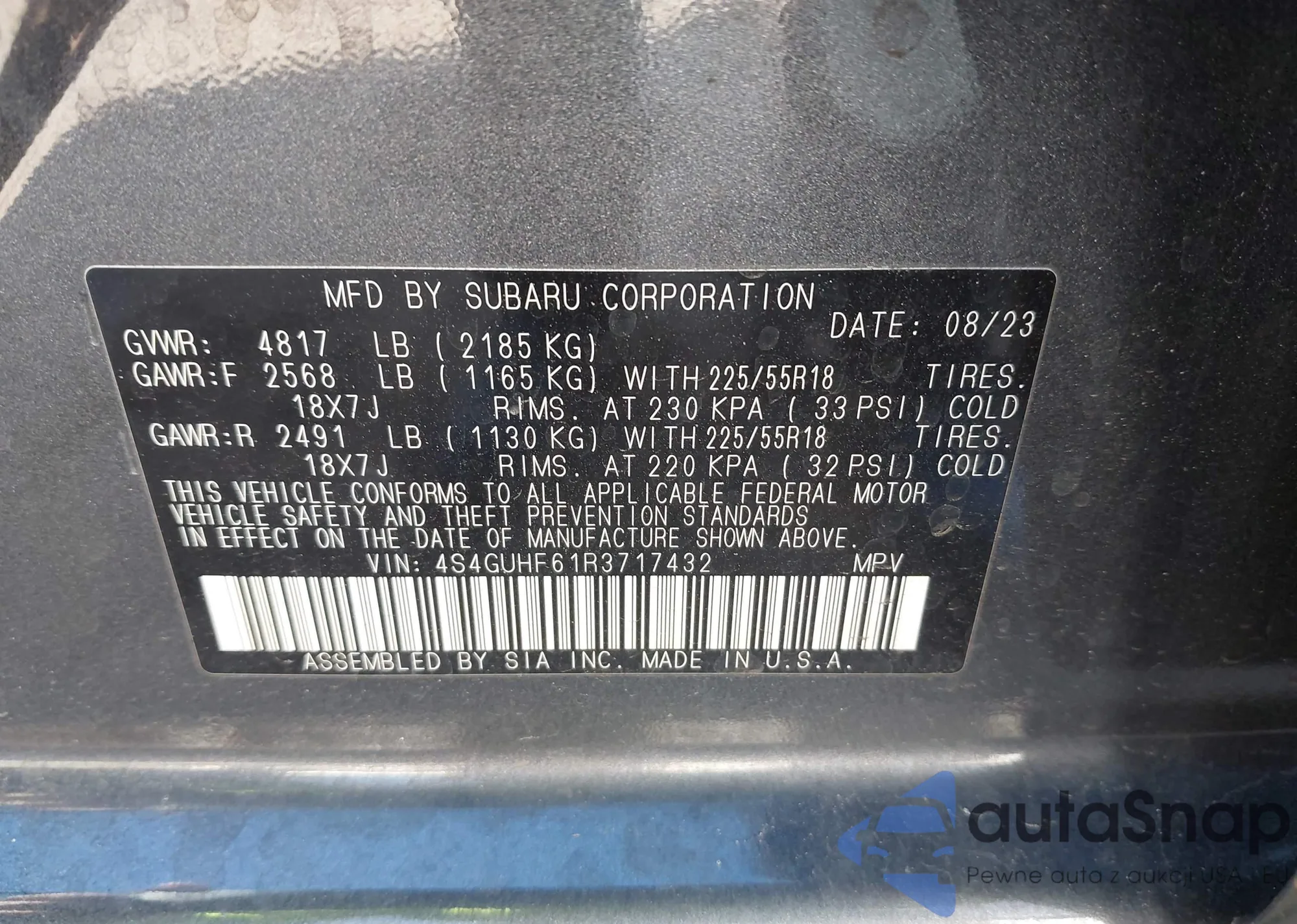 • VIN 4S4GUHF61R3717432